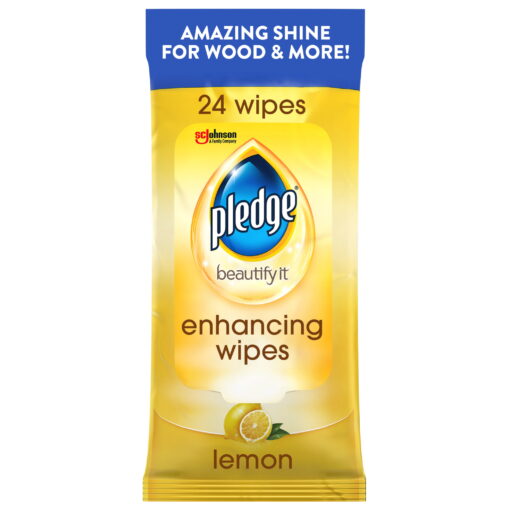 Pledge Beautify It Lemon Enhancing Wipes – Conveniently Dust, Clean and Shine Wood, Stainless Steel and More, 24 ct