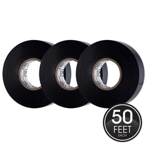 PowerGear Electrical Tape, 3 Pack, 50 Ft Long Roll, 3/4 Inch Wide, Indoor Use Only, UL Listed,, Black, 18162