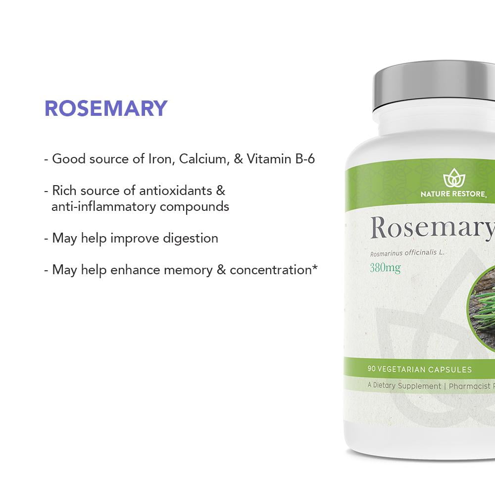 - ROSEMARY BENEFITS | Rosemary’s active antioxidant, carnosic acid has shown in research to support healthy blood glucose, mood & cognitive support as well as eye health