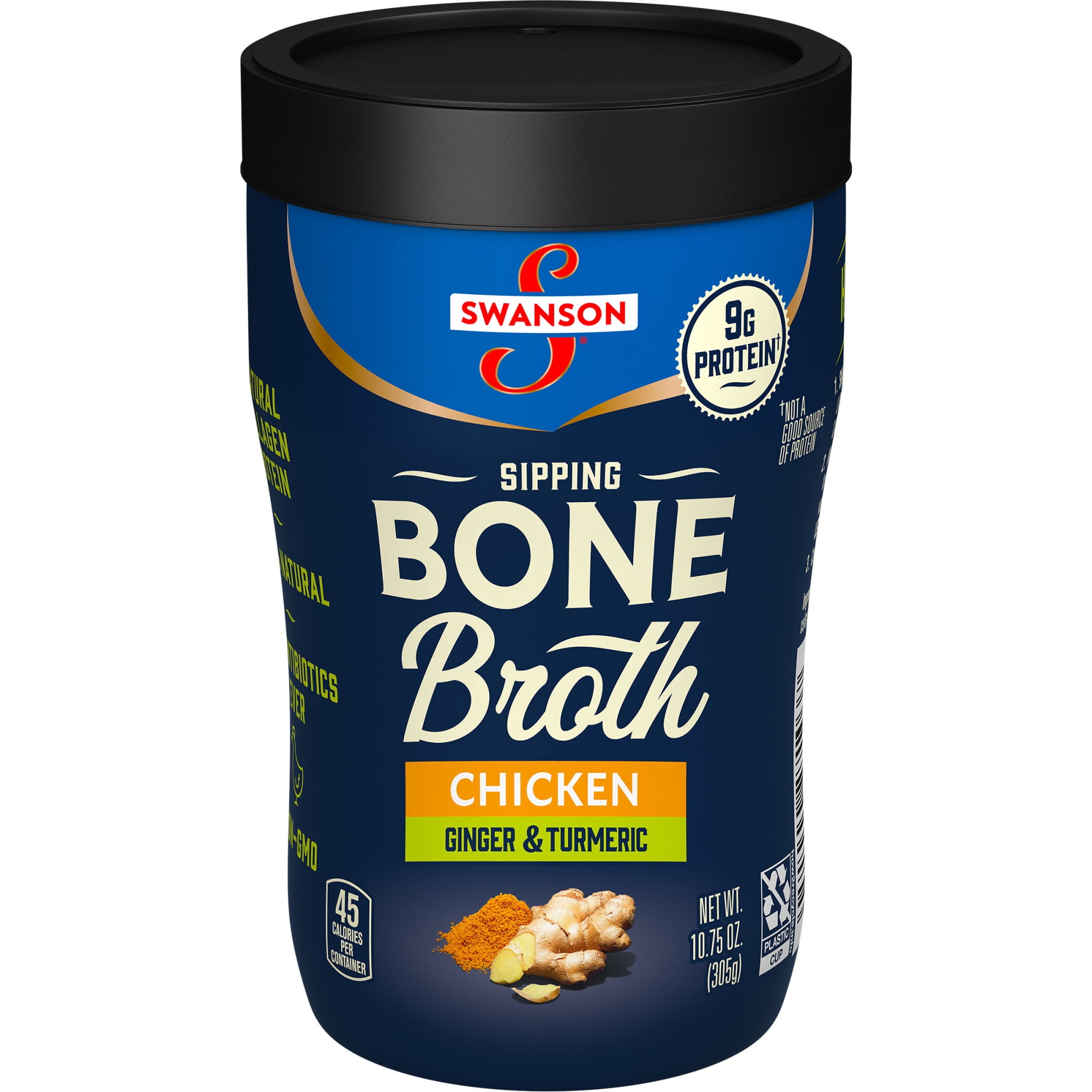 Swanson Sipping Bone Broth, Chicken Bone Broth with Ginger & Turmeric, 10.75 Ounce Sipping Cup