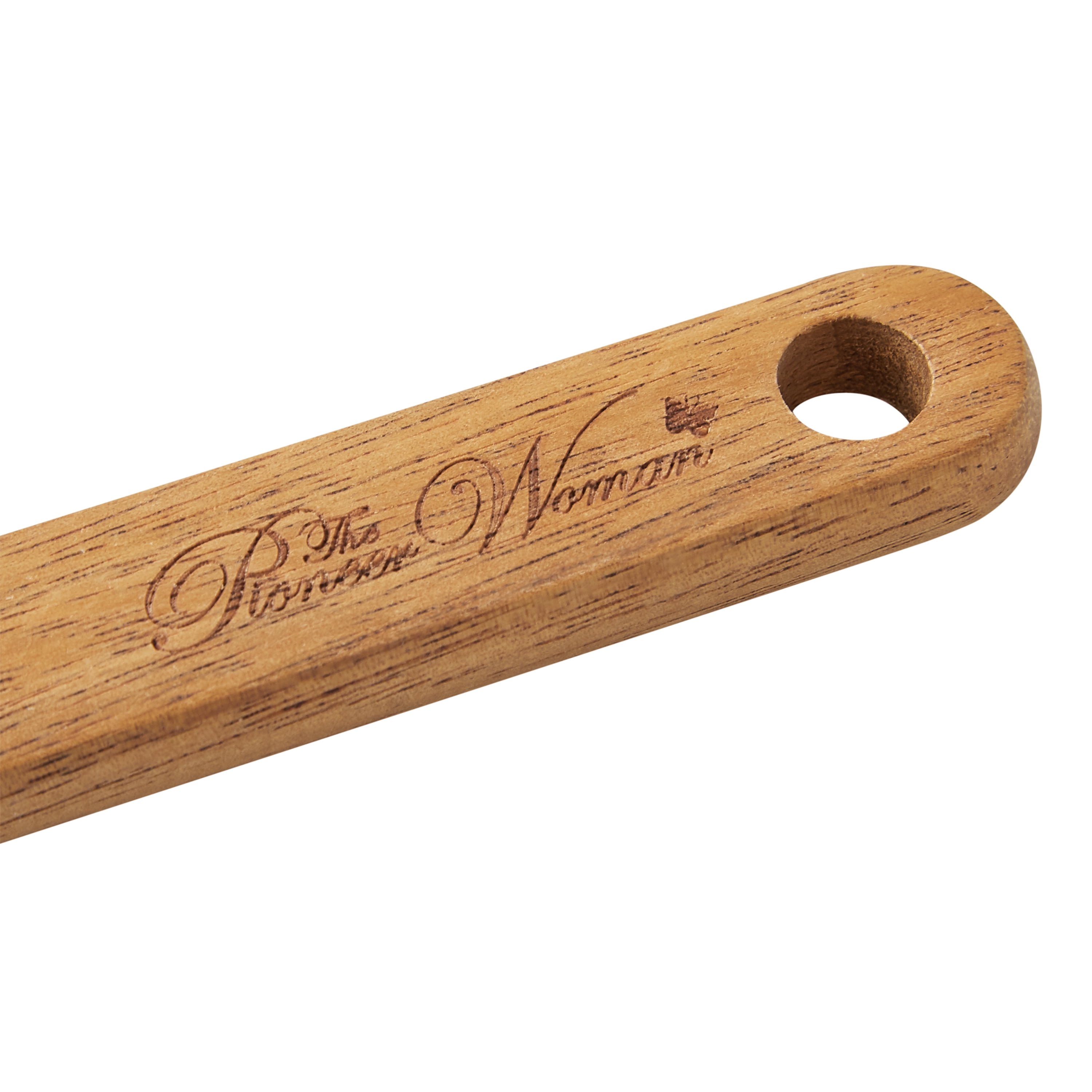 The Pioneer Woman Silicone Spatula will become your kitchen staple for easy everyday cooking and baking. Featuring a soft yet sturdy silicone head with curved edges, this spreader spatula is perfect for scraping batters, creamy sauces, and any thick contents from the sides, corners, and bottoms of dishes or combining and mixing wet and dry ingredients. The front side of the spatula showcases Ree’s gorgeous signature Mazie design, while the flip side displays a measurement equivalents chart to help perfect recipes. Durable and attractive, the nylon head is heat-resistant up to 450 degrees Fahrenheit and safe on cookware surfaces, and the acacia wood handle is as gorgeous as it is functional. For the best long-lasting results, hand washing is recommended. Meet Ree: Ree Drummond is a NY Times Best Selling Author, TV personality, social media phenom, and the woman behind the popular Pioneer Woman lifestyle blog that started it all. She’s also a lover of butter, basset hounds, Ethel Merman, her hunky, cowboy husband Ladd, and their four kids. Her casual country style and delicious recipes have made her a go-to for all things cooking and entertaining.
