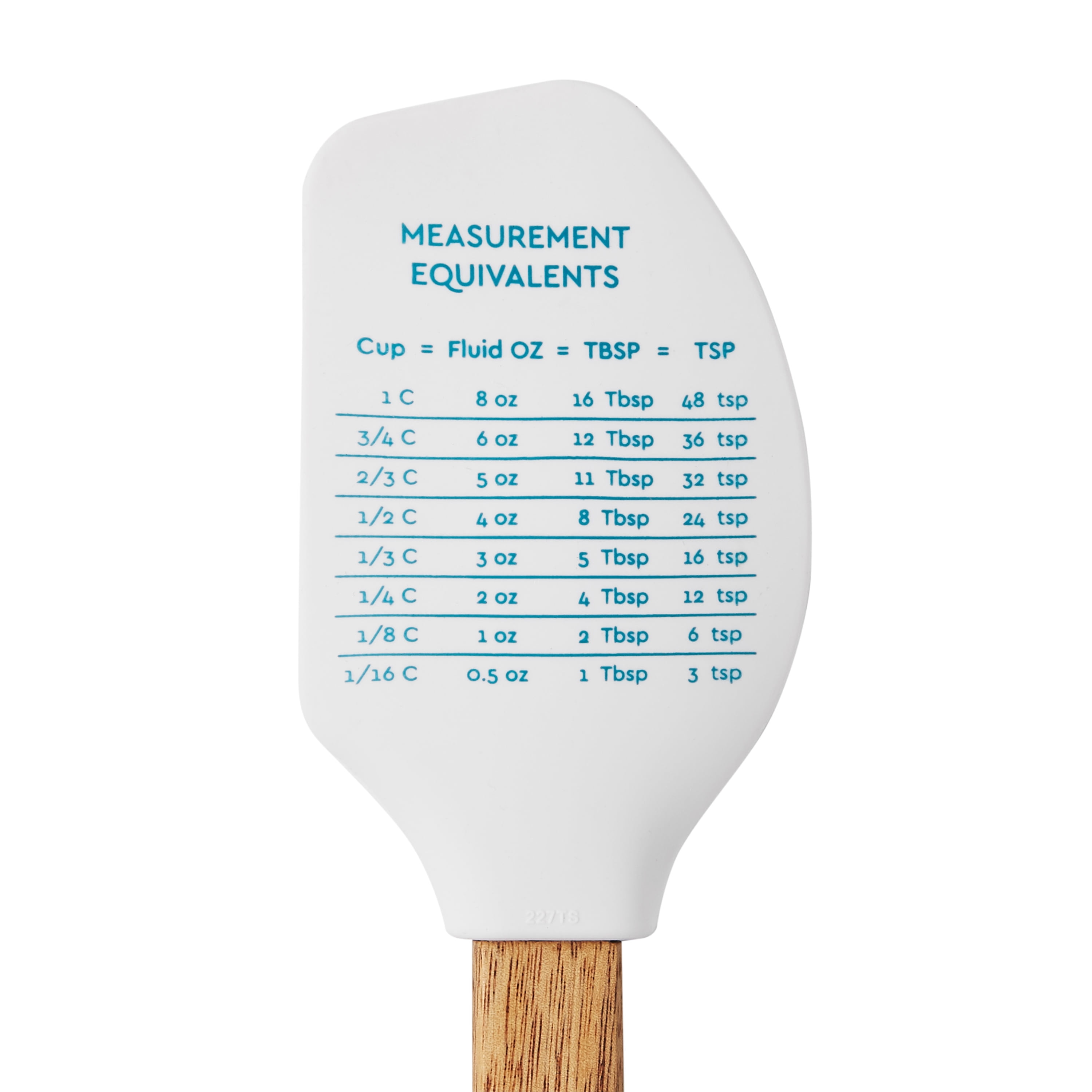 - Flip side displays a "Measurement Equivalents" chart