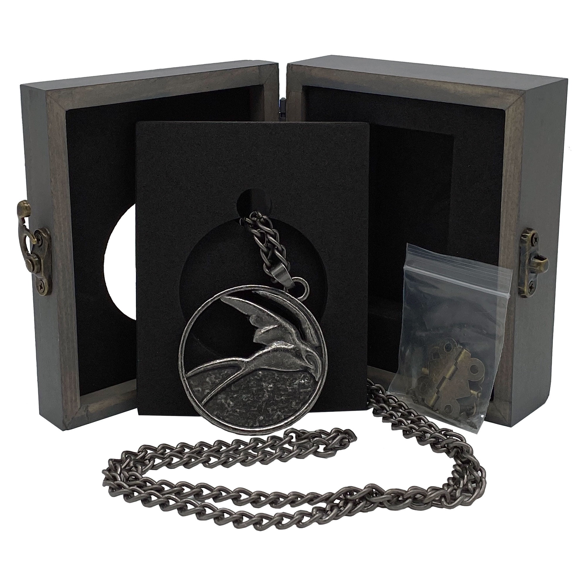 Fans of the Netflix series “The Witcher” will want to add this Ciri medallion necklace to their collection. The story follows the Witcher, a mutated monster hunter for hire, in his many adventures where people often prove more wicked than beasts. Portrayed by actress Freya Allan, Princess Cirilla of Cintra is one of the main characters in the hit streaming series. Packaged in a collectible wooden box with metal clasps, the antique silver medallion features Ciri’s iconic swallow design. The pendant is the perfect size, measuring 2 inches in diameter, and includes a 30-inch necklace chain. In addition to being the ideal cosplay or costume accessory, this pendant necklace is perfect for any Witcher fan and makes a great gift for a birthday, Valentine’s Day, Mother’s Day, wedding, anniversary, Christmas and more. Ideal for ages 15 and up.