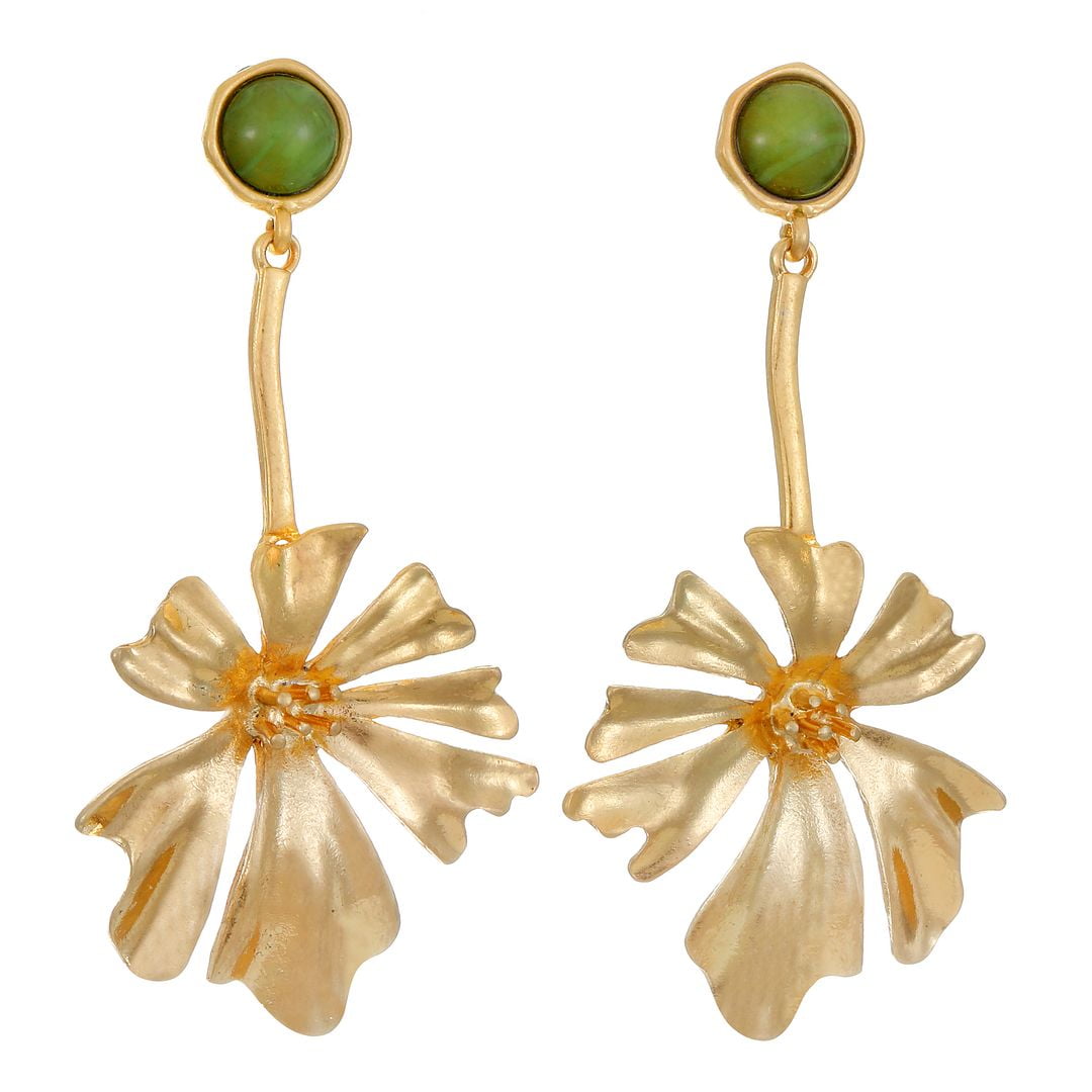 Time and Tru Gold Tone Flower Statement Earring, Green
