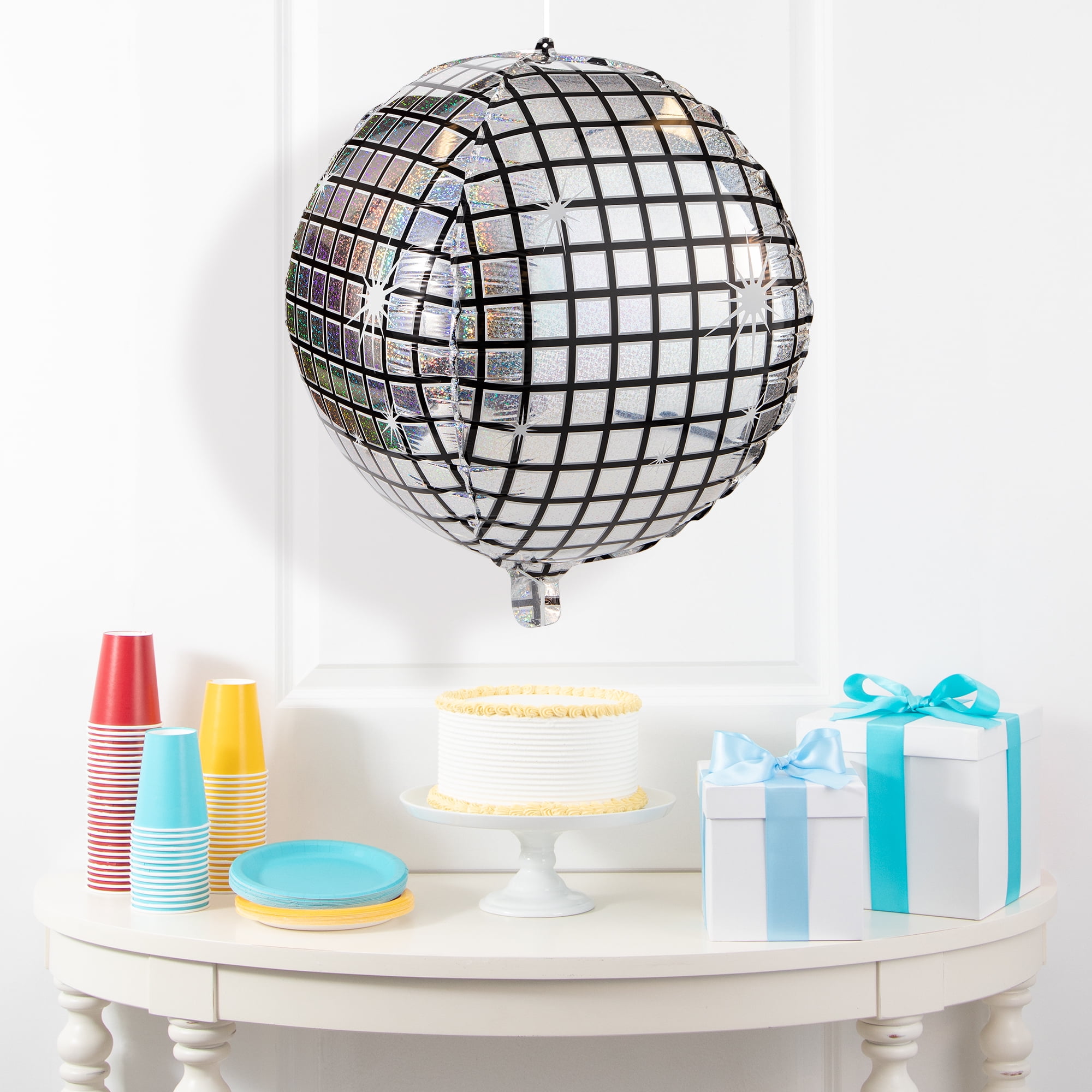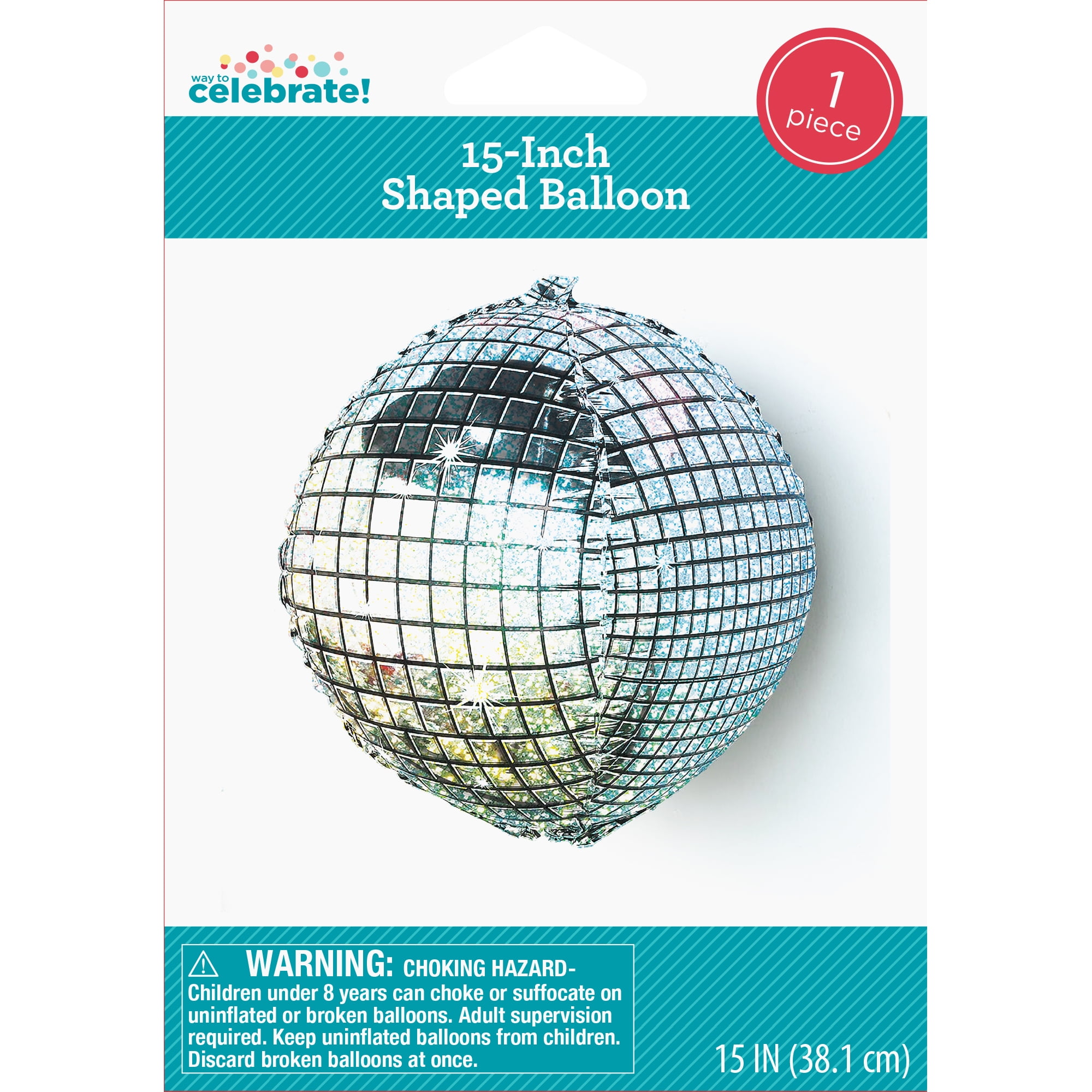 Get in the party groove with the Way to Celebrate Disco Ball Mylar Balloon, 1 ct. Measuring 15", this mylar balloon features a disco ball design that will make all your guests want to boogie at your ‘70s-themed bash. Pair this balloon with any other silver party supplies and hang it near the dance floor to create a retro atmosphere. Sold individually, grab yours today."• Each package includes a Way to Celebrate Disco Ball Mylar Balloon, 1 ct, perfect for party decorating. • The balloon measures 15" and can be hung throughout your party. • The groovy balloon features a disco ball design complete with metallic silver foil. • This decoration is perfect for ‘70s-themed parties. • Also, be sure to check out the other items from our wide selection of party supplies including additional decorations and tableware for all your serving needs."