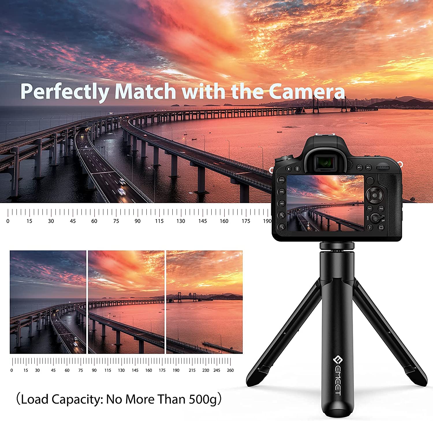 - Lightweight and Portable: This eMeet pocket tripod weighs only 76.5 g (2.7 oz), a normal egg is 50 g (1.8 oz), and its minimum size: 1 in (W)*6.2 in (H). You even can put this compact tripod stand into your pocket or handbag and carry it to wherever you go.