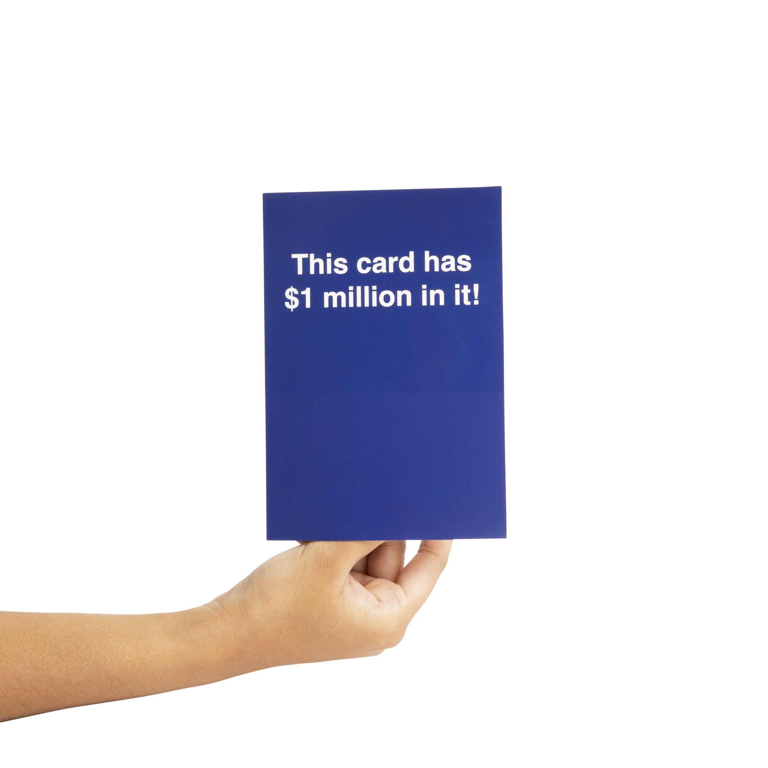 The only way this card is actually coming with a million dollars is if you also include a lucky lottery ticket. But on the off chance you do… HMU 😉 This money card plays a prank of its own on the recipient: once inserted, your gift card, cash, or check obscures the message inside, so the hilarious quip is only revealed once the recipient has grabbed (and counted) their cash. What Do You Meme?® is an entertainment product company driven by the digital age and inspired by pop culture. The products we make are designed to create joy; either by bringing internet-style, shareable humor from your phone into your life, or bringing the competitive fun to you wherever you are.