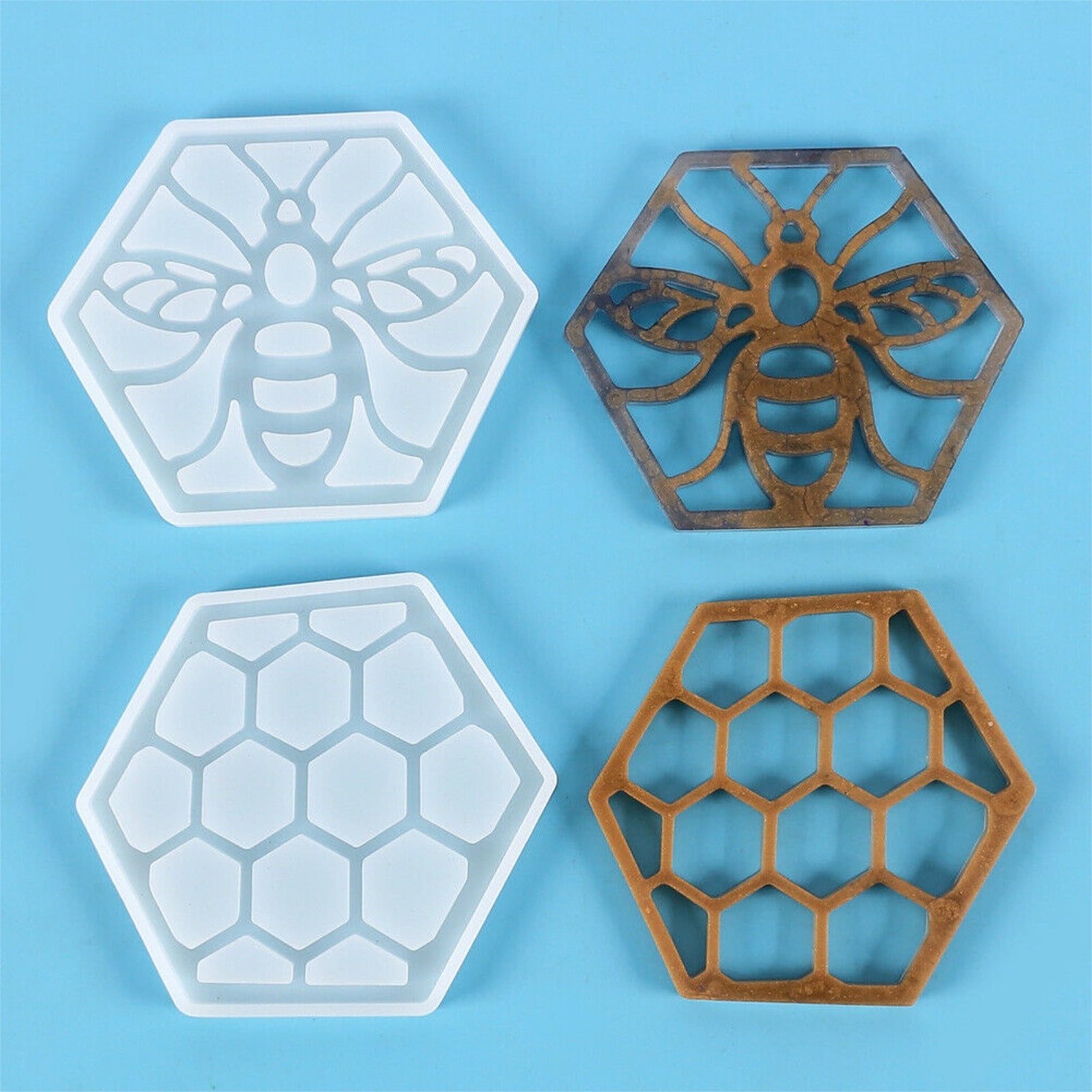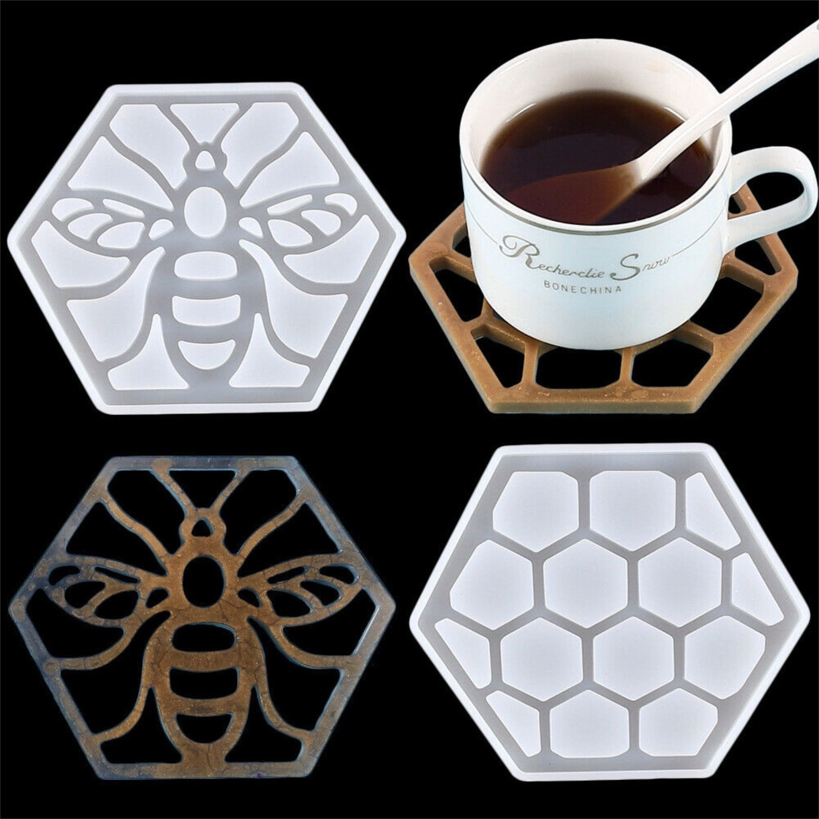 - 2Pcs Silicone Bee Honeycomb -Coasters Resin Casting Mold Tray Cup Mat Epoxy Mould