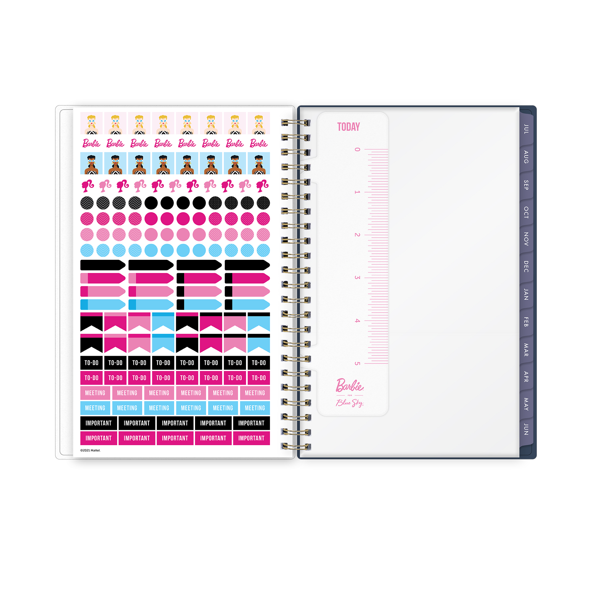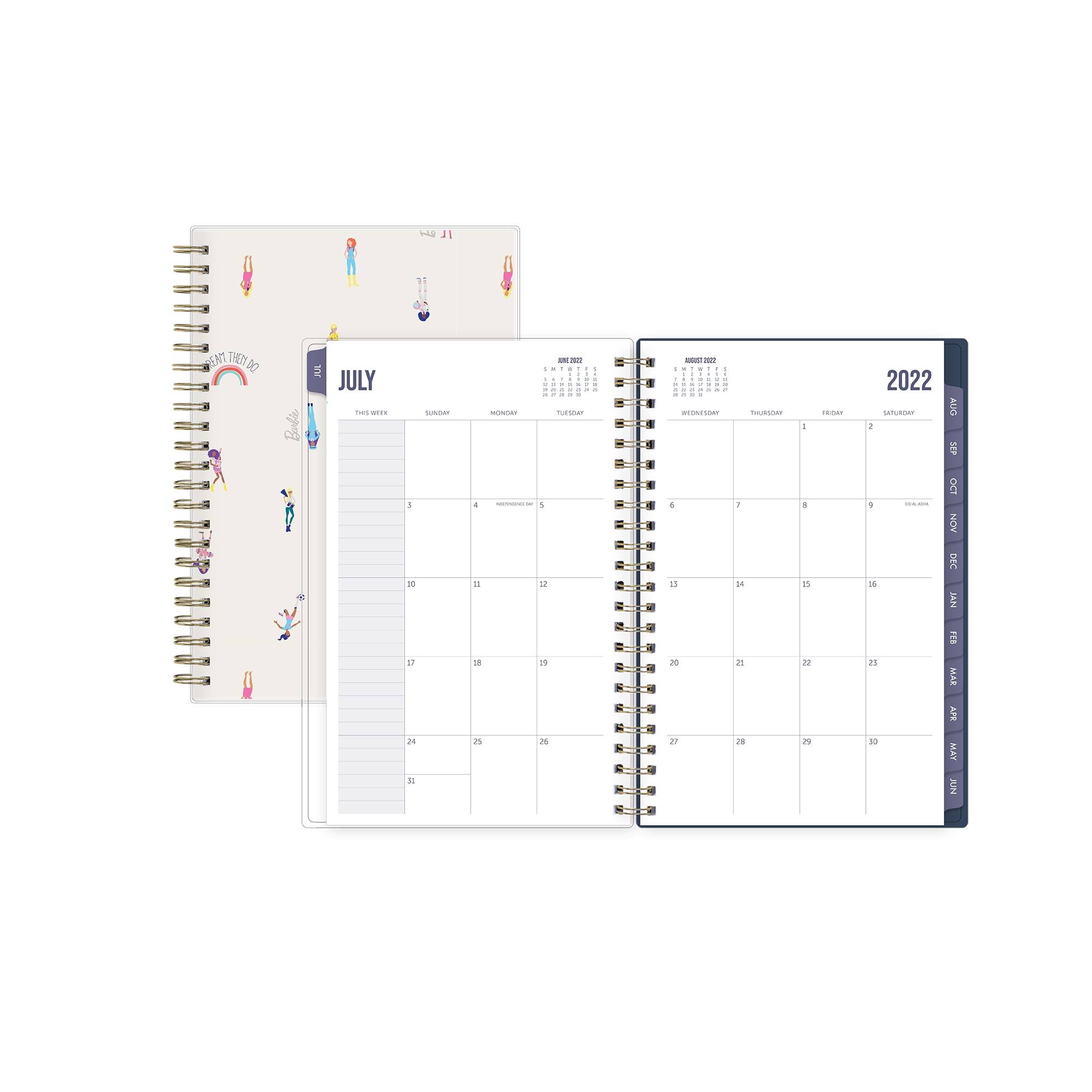 Dress up your daily routine with a cute and colorful weekly academic planner from Barbie for Blue Sky. This flexible planning calendar makes a fun fashion statement and empowers you to stay organized during the 2022 – 2023 school year. Enjoy ample writing space on Barbie-themed weekly page layouts, tabbed monthly views, and tons of lined notes sections for your lists, goals, and journaling.