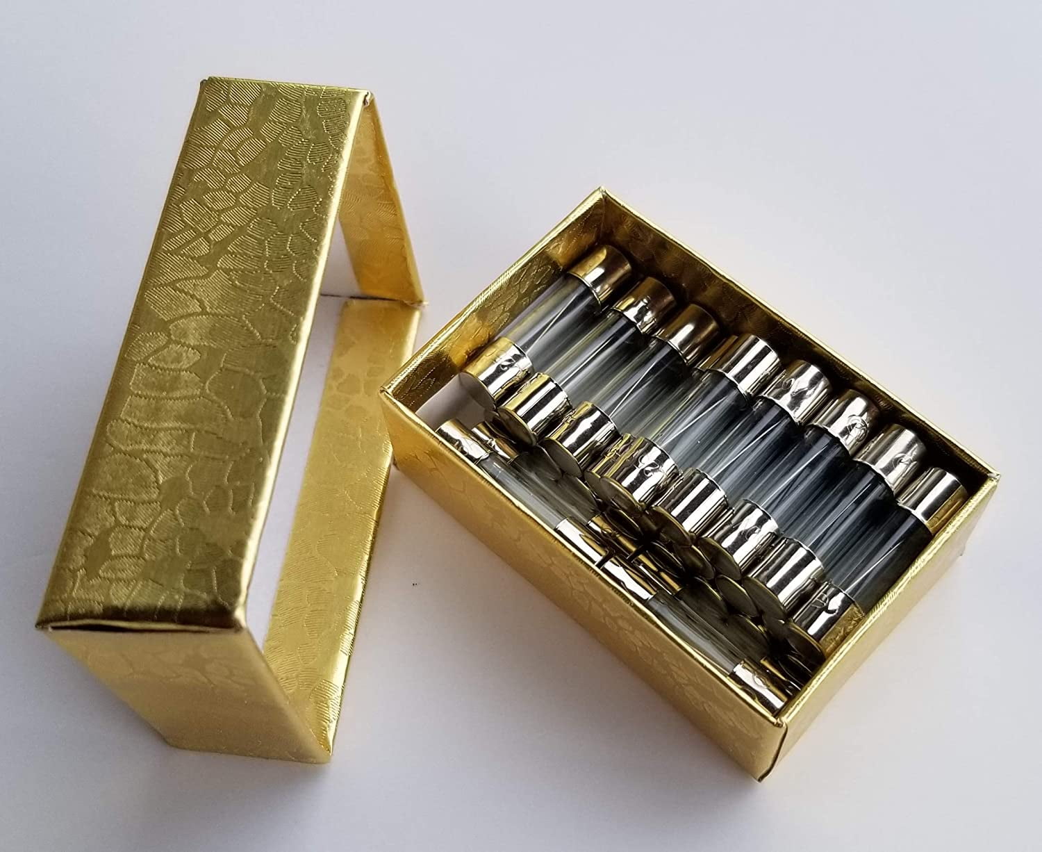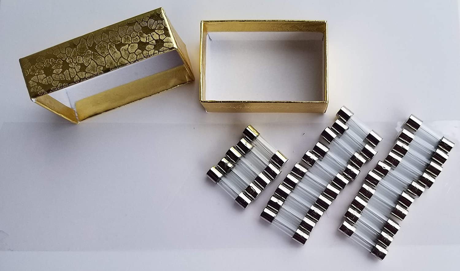 Perfect replacement for your C9 or C7 Christmas lights 5 Amp 125 Volt Fast Blow Glass Cartridge 5MM x 20MM (About 3/4" long) 26 replacement fuses! Packaged in a Small Gold Box for Safe Storage Fuses – Lot of 26 – NEW! Perfect for C7 & C9 Christmas Lights 5 AMP 125 Volt 5x20mm (About 3/4" inch long.) Fast Blow,glass tube body cartridge fuse These are the spare / replacement fuses you need for those great Christmas lights you like. Buy your spare fuses now, while you’re thinking about them. Your string lights will be ready to go next year! NOTE: VOLTAGE RATING For general circuit protection, the voltage rating on the fuse should be equal to, or greater than the circuit voltage of the circuit in which the fuse is applied. Fuses can be used at any voltage below the fuse voltage rating; a 250V fuse can be used in 125V circuits. I buy these fuses in bulk, 20,000 at a time. The manufacturer stamps them as either 125V or 250V, with the exact same electrical specifications.