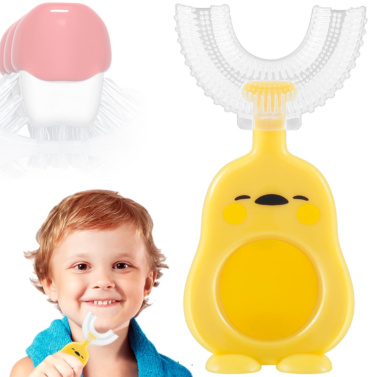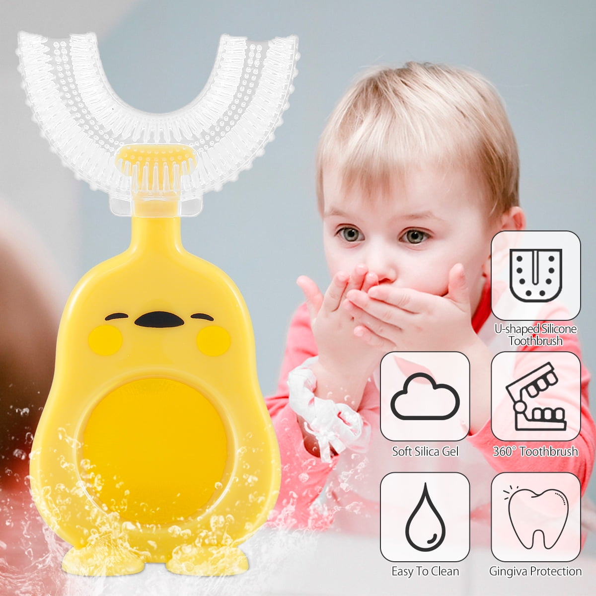 - 【Teeth Cleaning Training】: Brushing teeth with a regular toothbrush can be a pain for kids, but this U-shape toothbrush effectively cleans teeth without damaging gums, whole mouth toothbrush protects the enamel and keeps your mouth and gums healthy. It helps to teach your kids how to brush their teeth properly.
