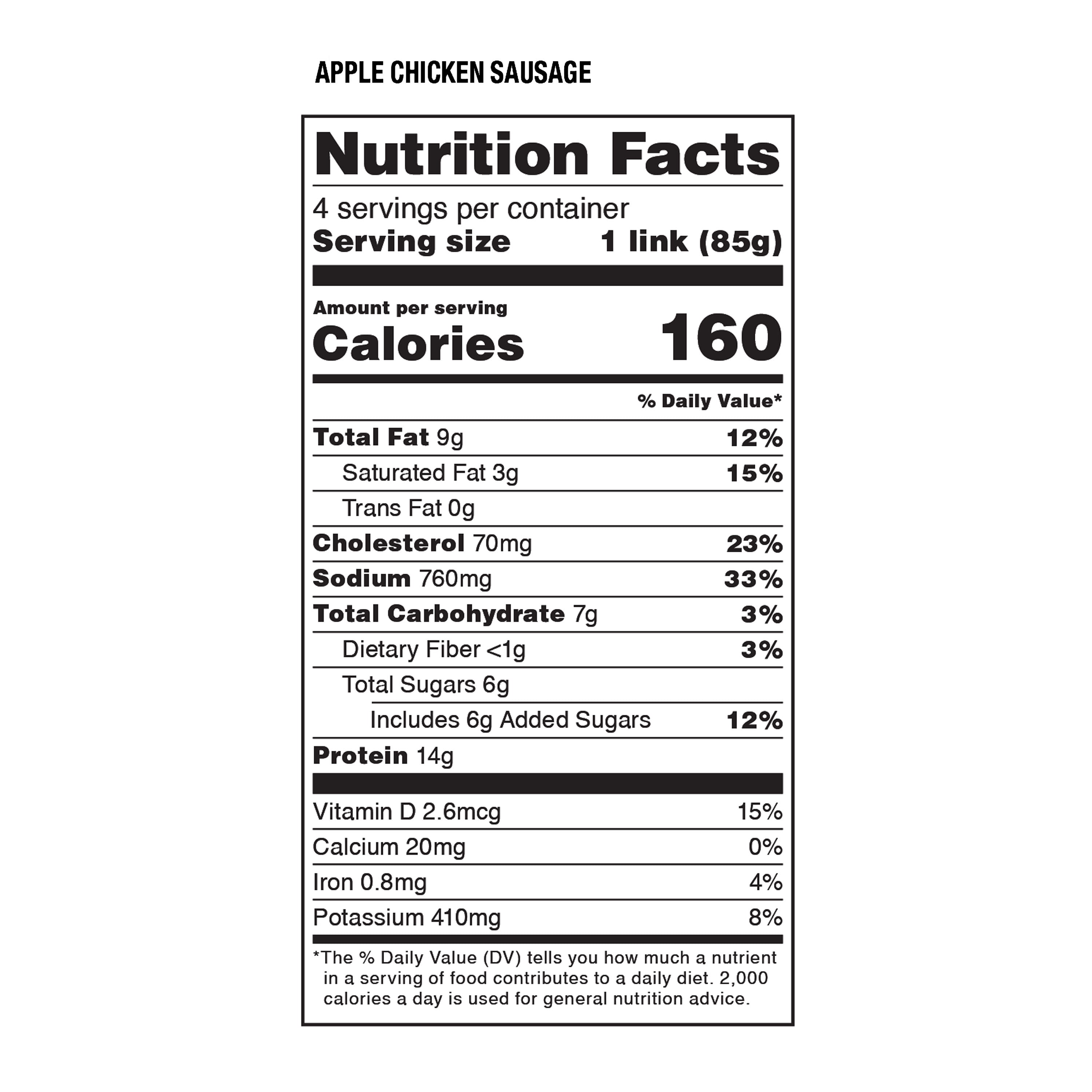 Marketside Chicken Apple Sausage Links are the perfect choice for your grill! These All-Natural links are fully cooked, with no added nitrates or nitrites. No artificial ingredients!