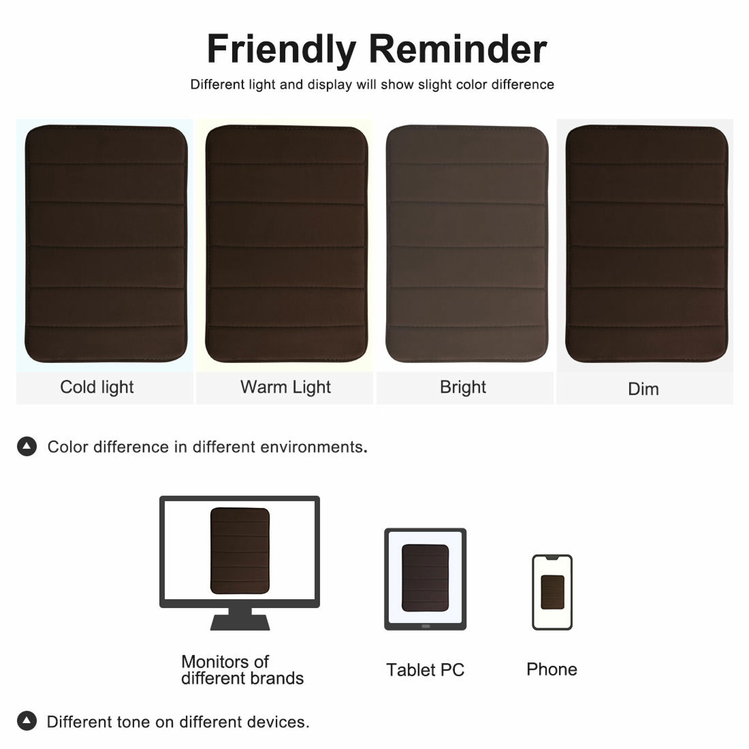The bath mat is made from coral velvet outer, memory foam inner and durable PVC backing. Soft velvet makes up the top layer of this floor mat. It can offer the comfort of standing on the clouds, but also can absorb as much water as possible from your wet feet, helping to keep your floors clean and dry.