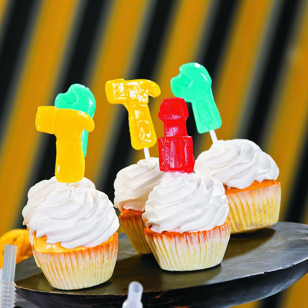 Your little builders will love our Tool-Shaped Lollipops. This fruit-flavored lollipop assortment features wrench hammer and screw driver shaped suckers so it’s perfect for a little boy’s construction theme birthday party. Use the lollipops in your party favor treat bags or leave one on each guest’s place setting. Designs will vary slightly as each piece of candy is hand decorated.© OTC• Blue raspberry cherry and lemon flavored.• Individually wrapped.• Includes 1 1/2" – 2" suckers on 4" sticks.• Total wt 7 oz.• Assortment may vary.• Fat-free.• Ingredient nutrition allergen and other product information are provided on our Web and Mobile sites for reference purpose only without warranty or representation as to accuracy. Manufacturers adjust their labeling regularly and are solely responsible for the accuracy of the information. For general questions concerning these items please contact our customer service at 800-228-0475.