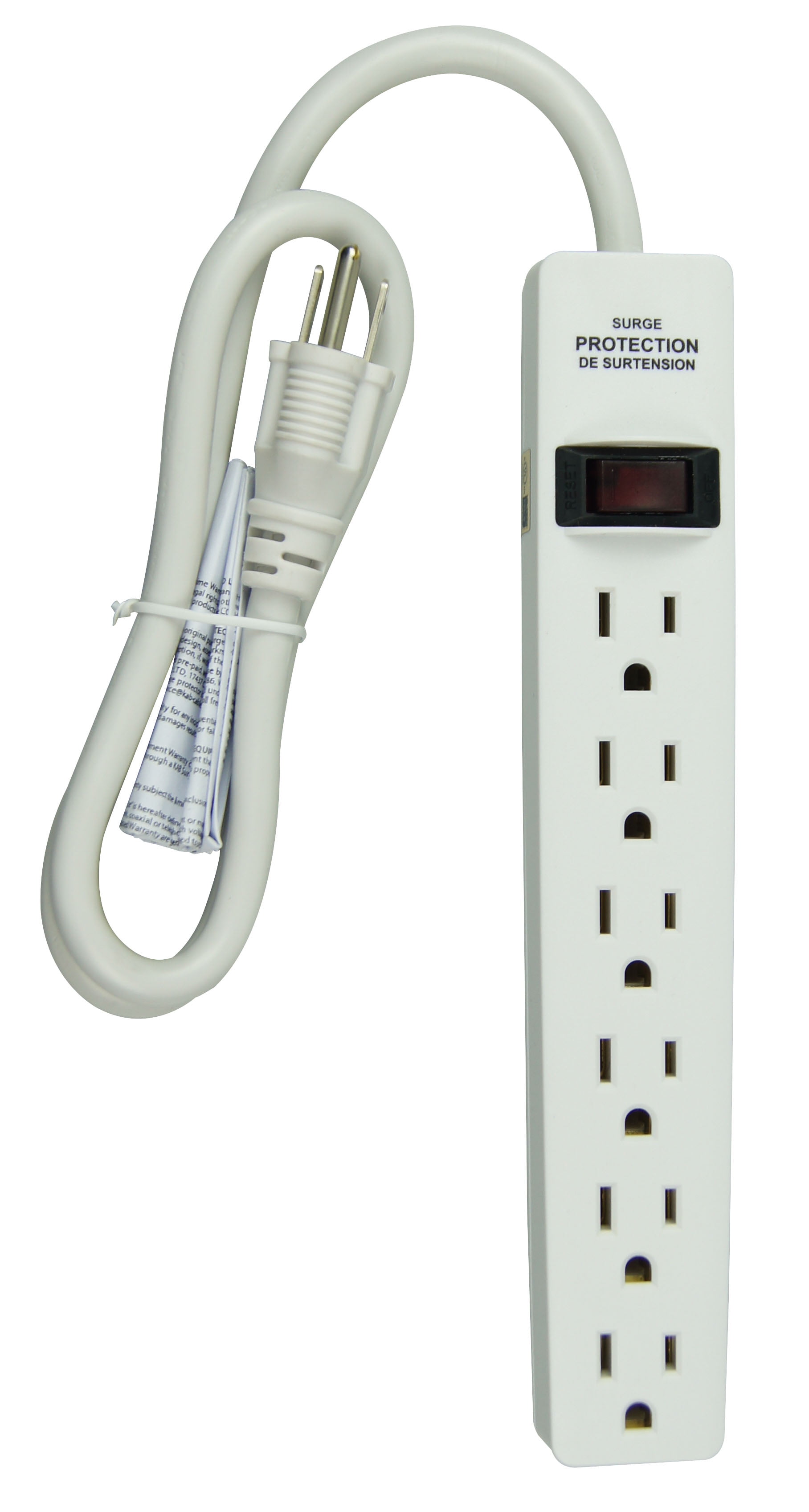 Hyper Tough 6-Outlet Surge Strip with 2.5 ft Cords 500-Joule Protection, White