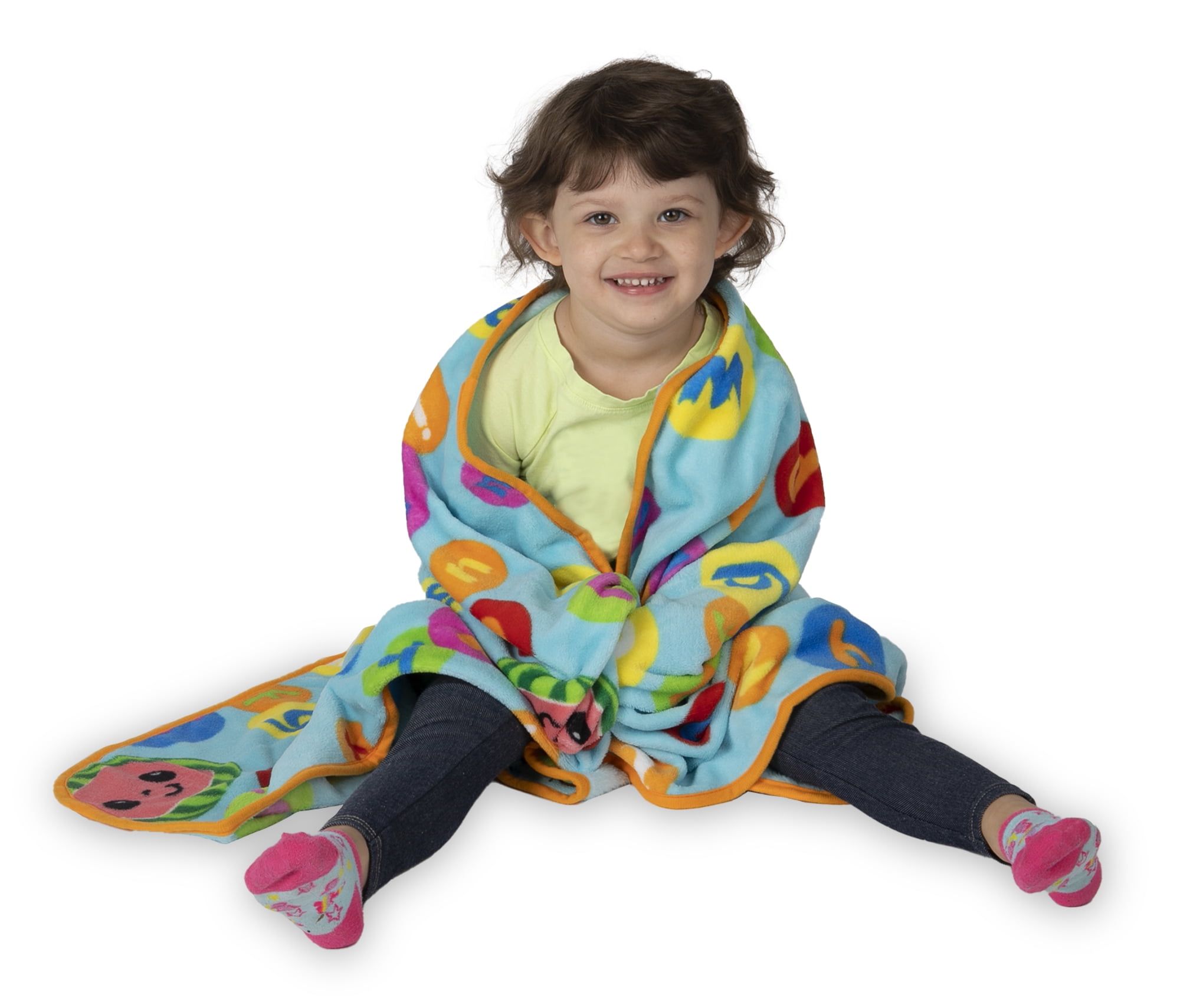The Cocomelon soft, warm, and cuddly, coral plush blanket is the perfect toddler size. This ultra-soft blanket is perfect for bedtime, overnight trips, or just lounging around. The bright, colorful print featuring the fun and educational characters from the popular preschool Youtube series are sure to delight young fans and inspire dreams of learning, fun, music and playful adventures. Perfect to complete your child’s Cocmelon bedroom set décor.