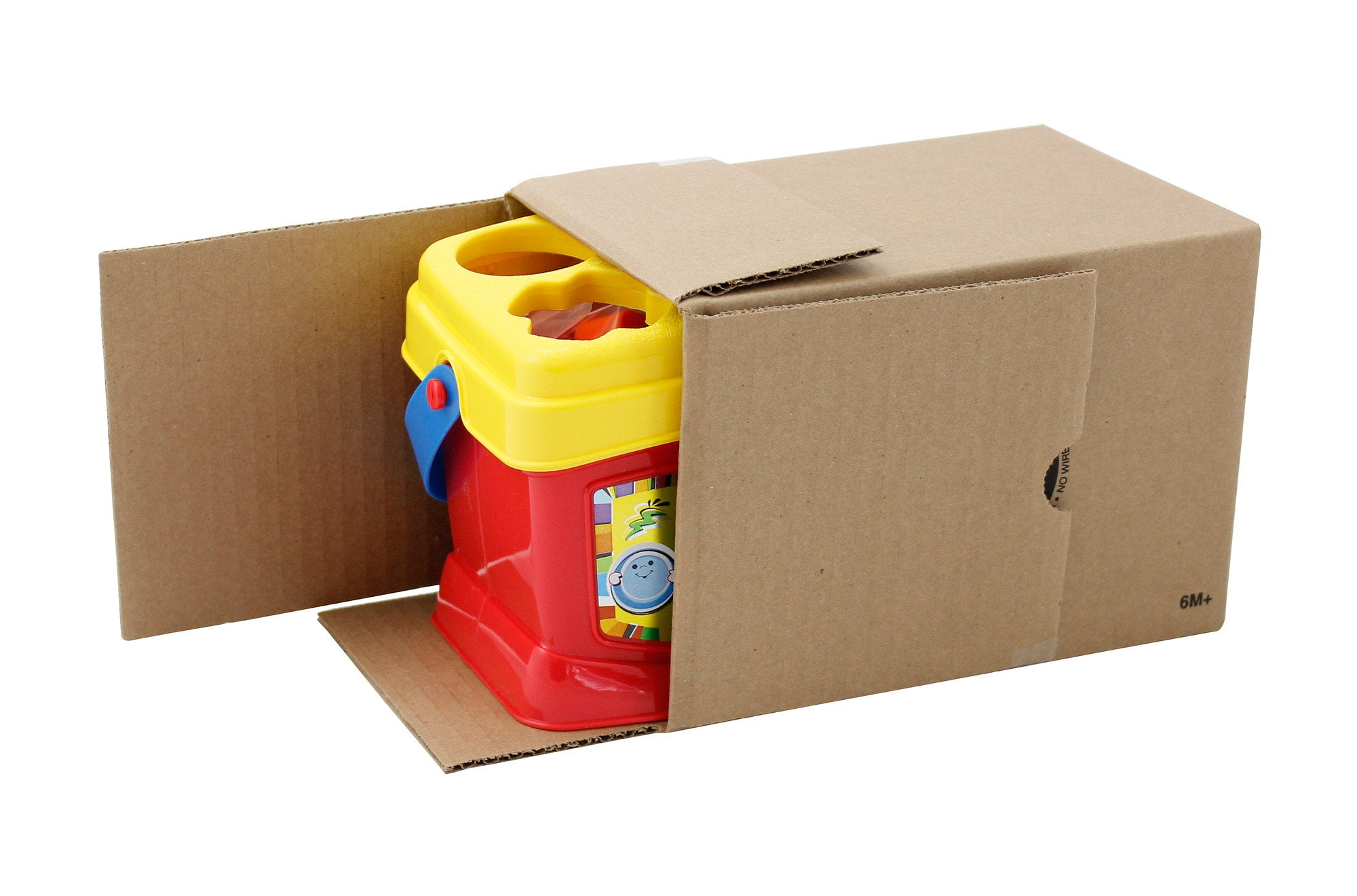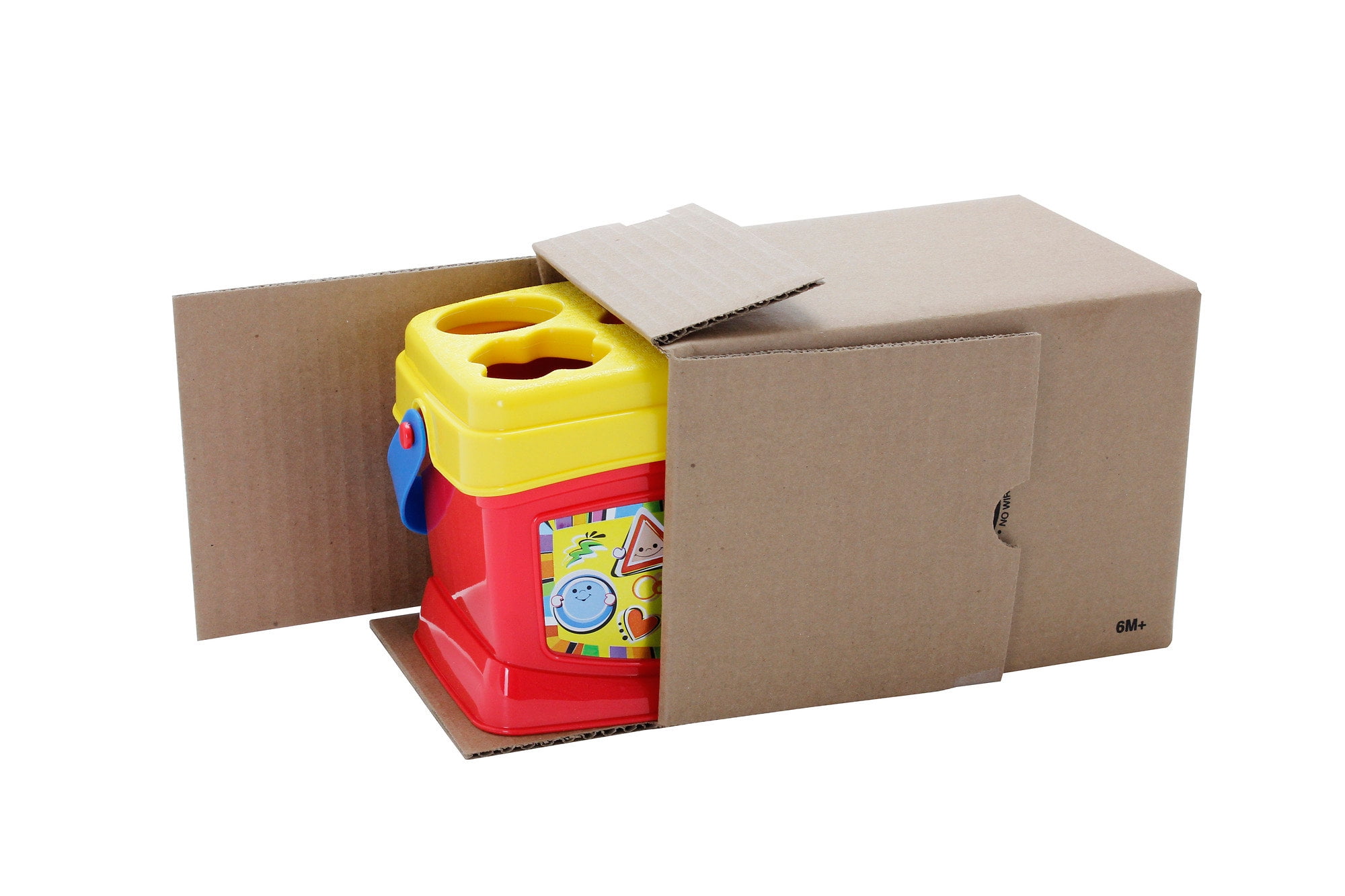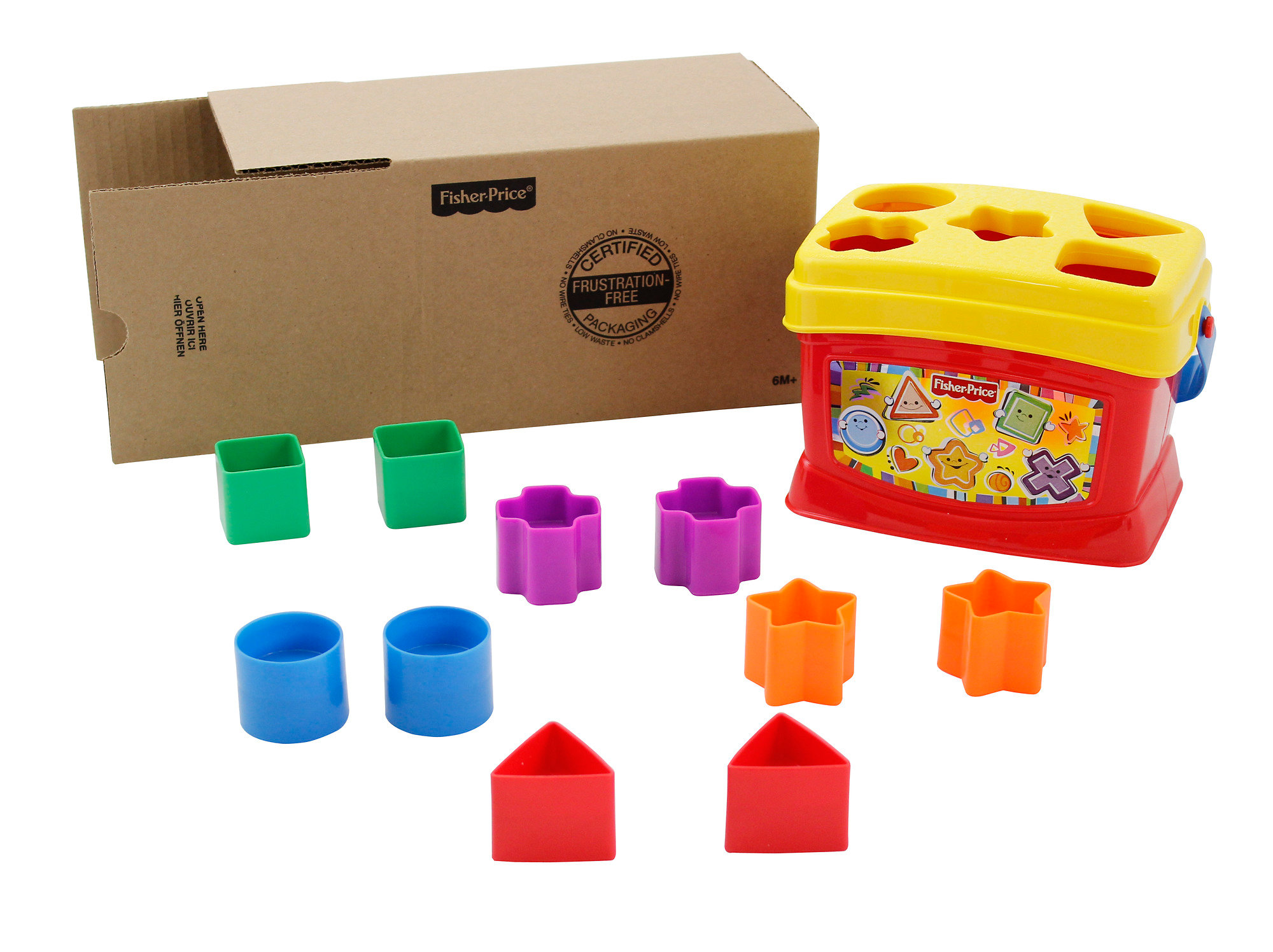 Ten bright blocks are ready to introduce baby to shape-sorting fun! Baby can drop blocks into the open bucket…or through the shape-sorting lid! Filling the bucket with blocks, dumping them out, and starting over is great for eye-hand coordination and other early skills. Then baby can move on to sorting and stacking, learning about identifying and matching shapes while having fun! All ten blocks fit inside the bucket, with a carry-handle for easy take-along.