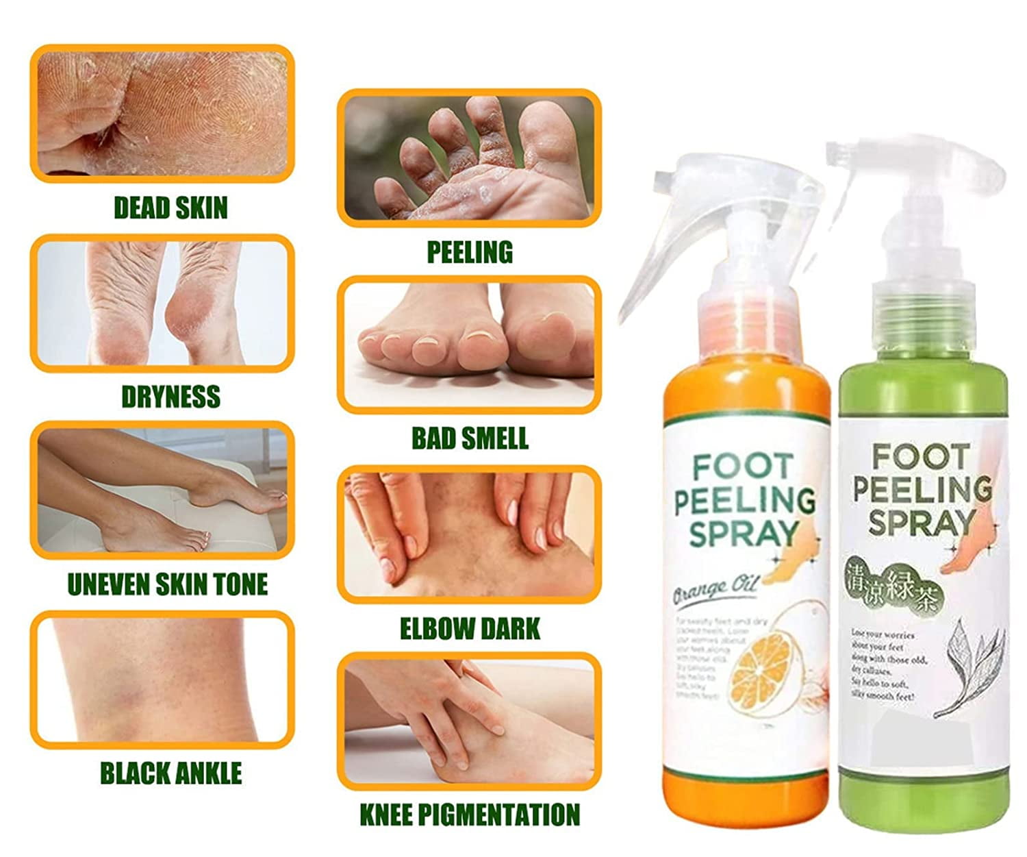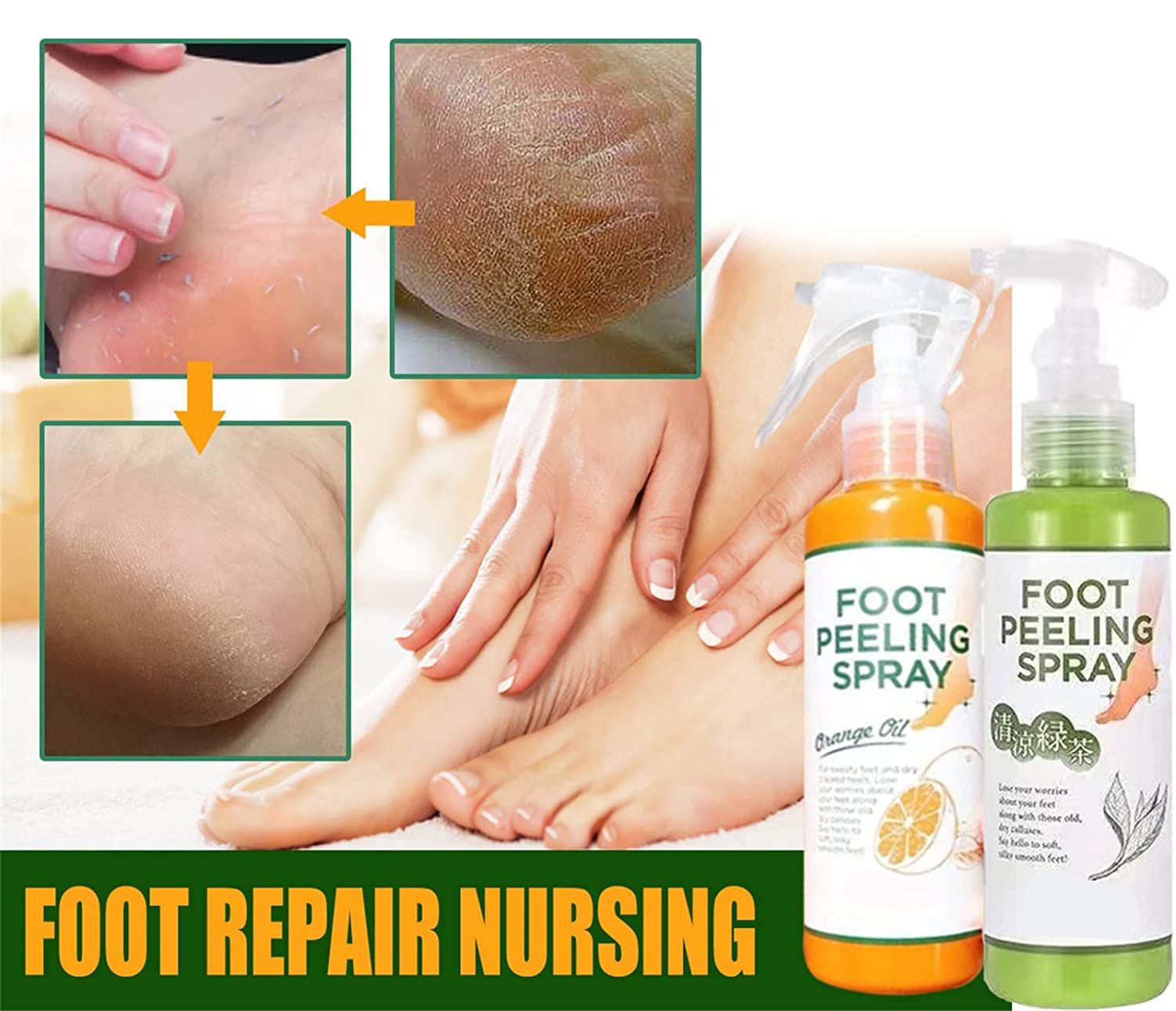 About this item【 Foot Peeling Oil】Orange Foot Peeling Oil Spray Moisturizing Moisturizing Nourish Peeling Spray Removes dead skin in seconds. Natural Pedicure Hand Cosmetics Peel-off Nourishing Moisturizer.【Gentle Foot Care】Our foot peeling spray orange oil can effectively remove rough, dead and calloused skin. It can also moisturize and nourish your foot, especially during the dry season.Efficacy: Clean and nourish the foot skin at the same time to help raise moist skin and against dry and rough. Comfortable and quick to use, no bad smell, no irritation.Easy to use: It is recommended to soak your feet for about 10 minutes to soften the cuticles. Spray the spray on severely peeling feet, gently rub it with your hands, or rub it with a towel. Just wash it with water, and it is recommended to use it 2-3 times a week.【Satisfactory Service】If you have any questions or problems, please contact us in time. Customer satisfaction is our top priority, we will reply within 24 hours and give you the best solution.