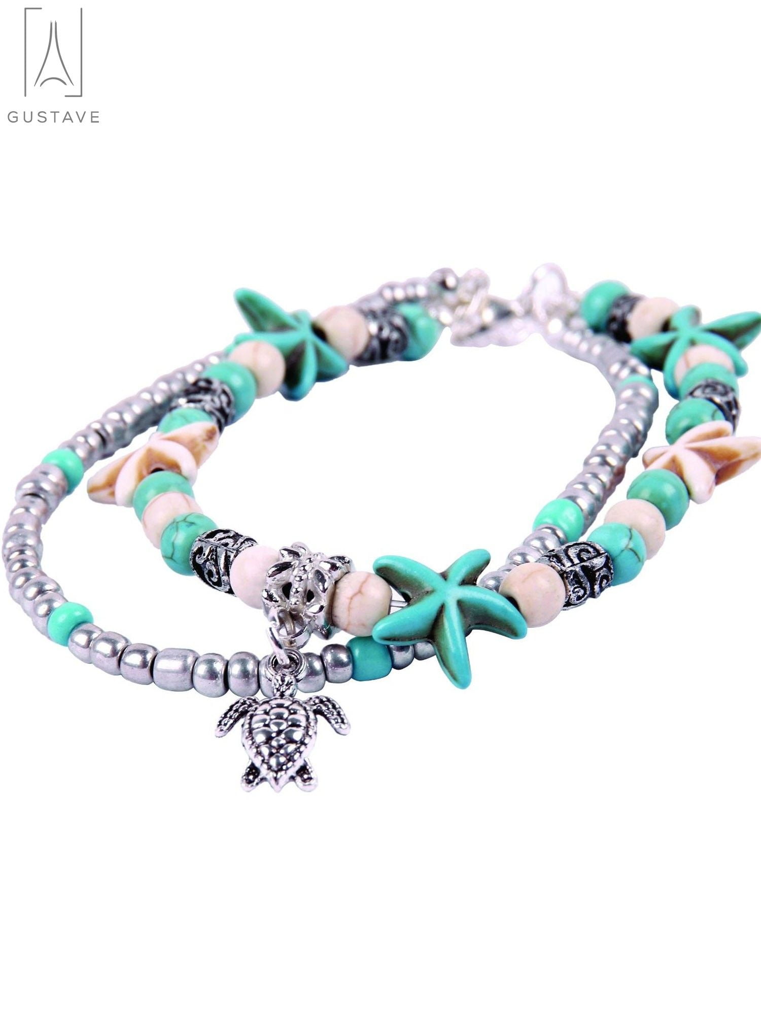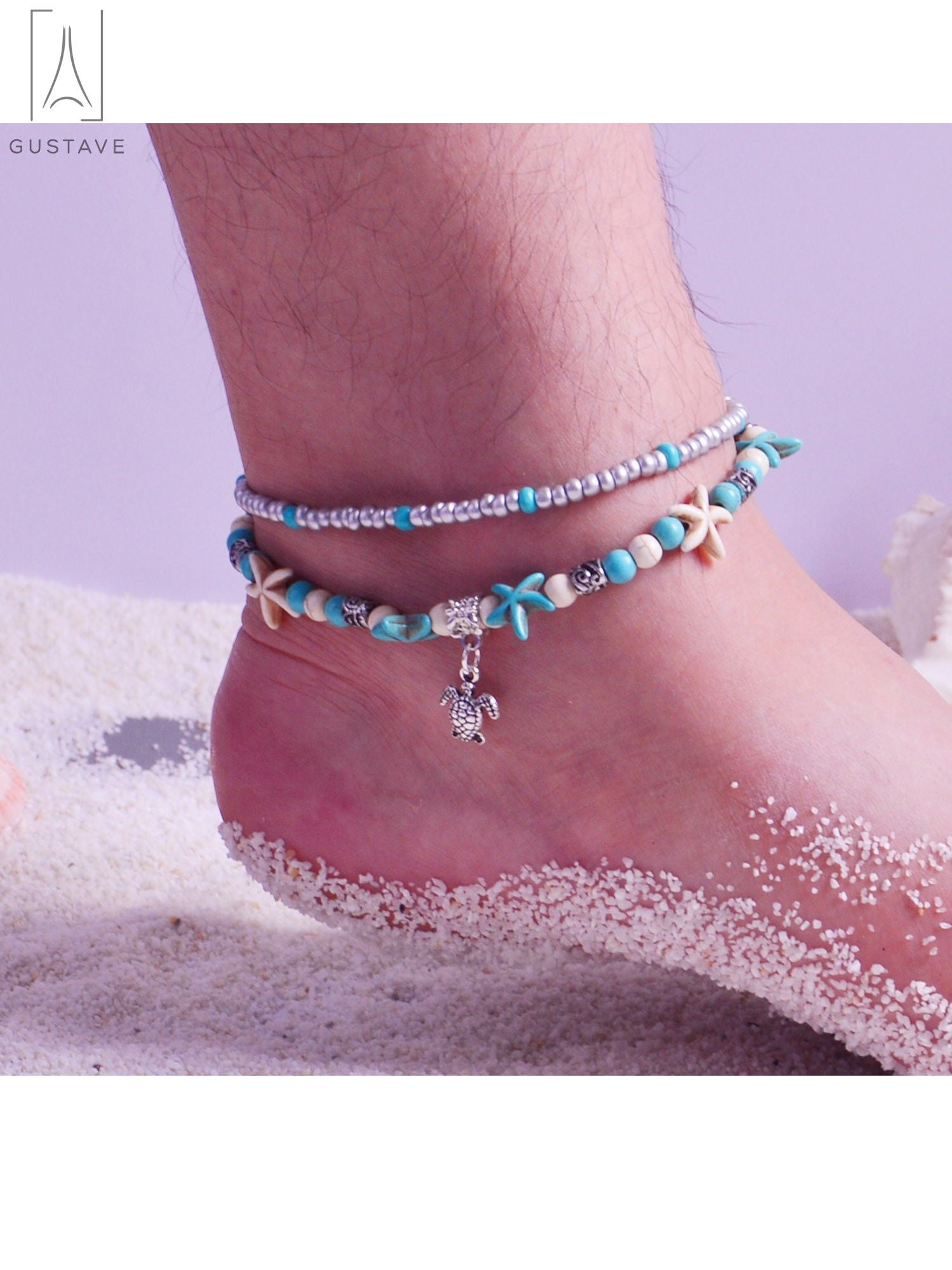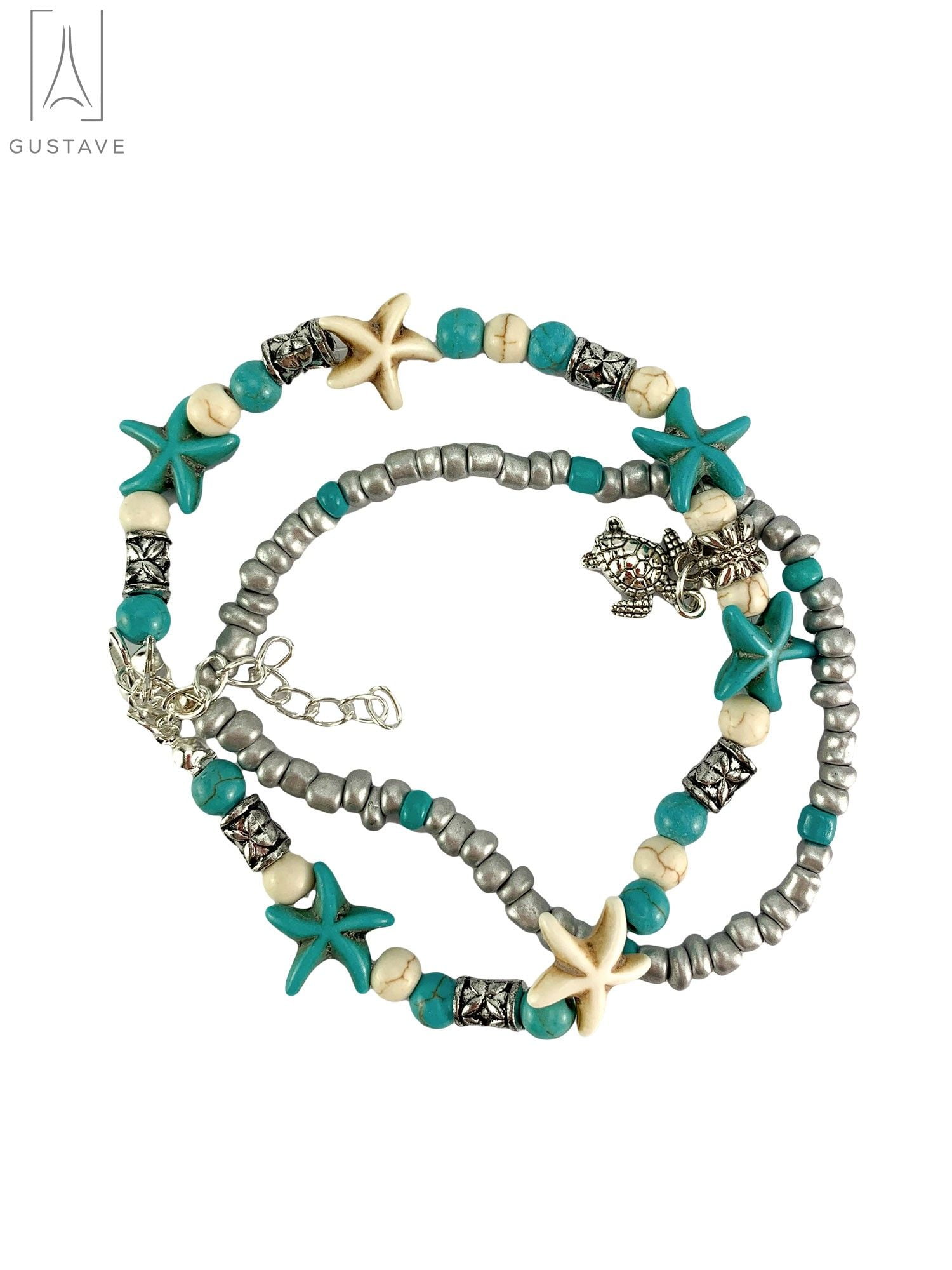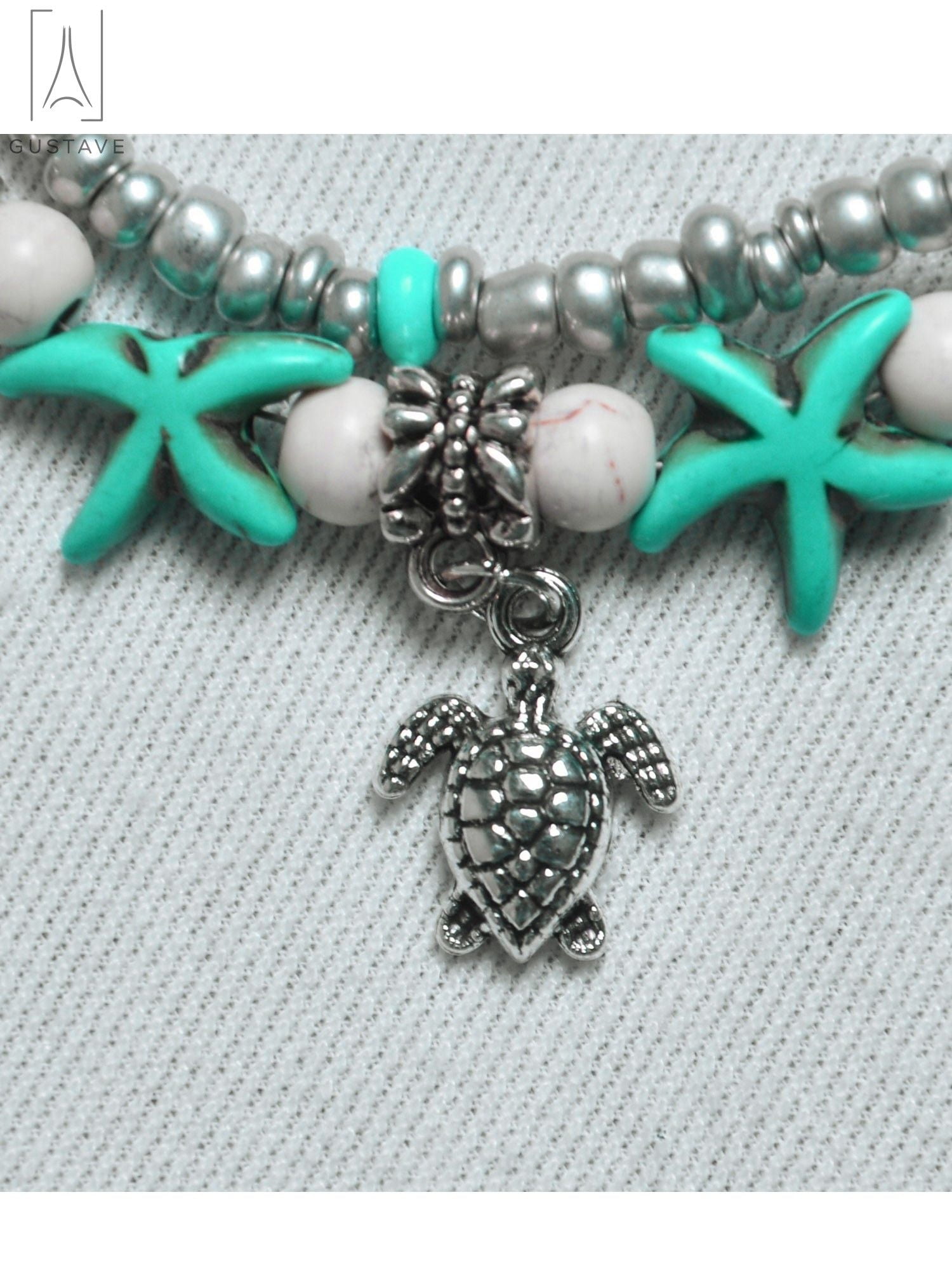 - Handmade starfish and turtle ankle bracelet, beautiful and fashionable.