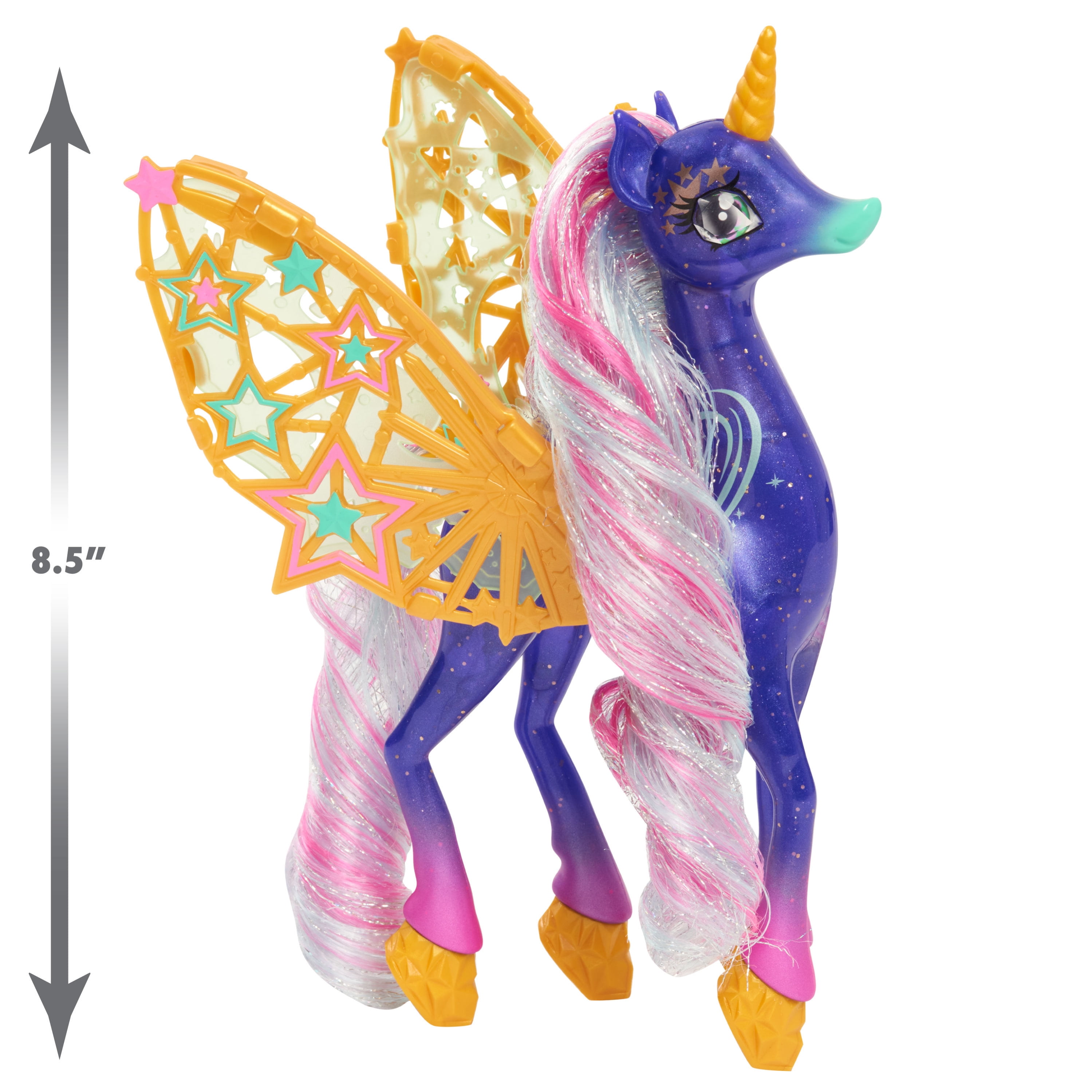 - Each Shimmercorn stands 7.5 to 8.5 inches tall and features a long vibrantly colored mane and tail with beautiful glittering accents.
