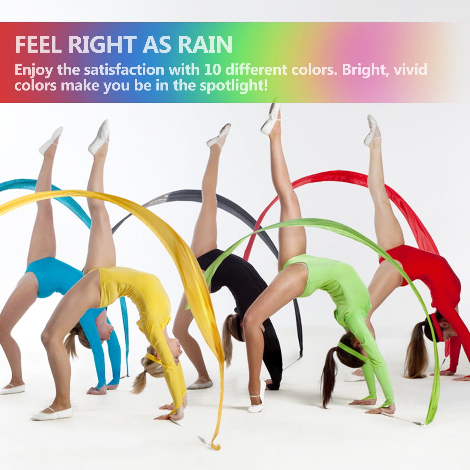 - ✔ SPECIFICATION – Each package includes 10 pieces of rhythm sticks with assorted colors. Each dance ribbon with a width of 2" and a length reaches 6.6 Ft (rod not included). The length of the rod is about 12".
