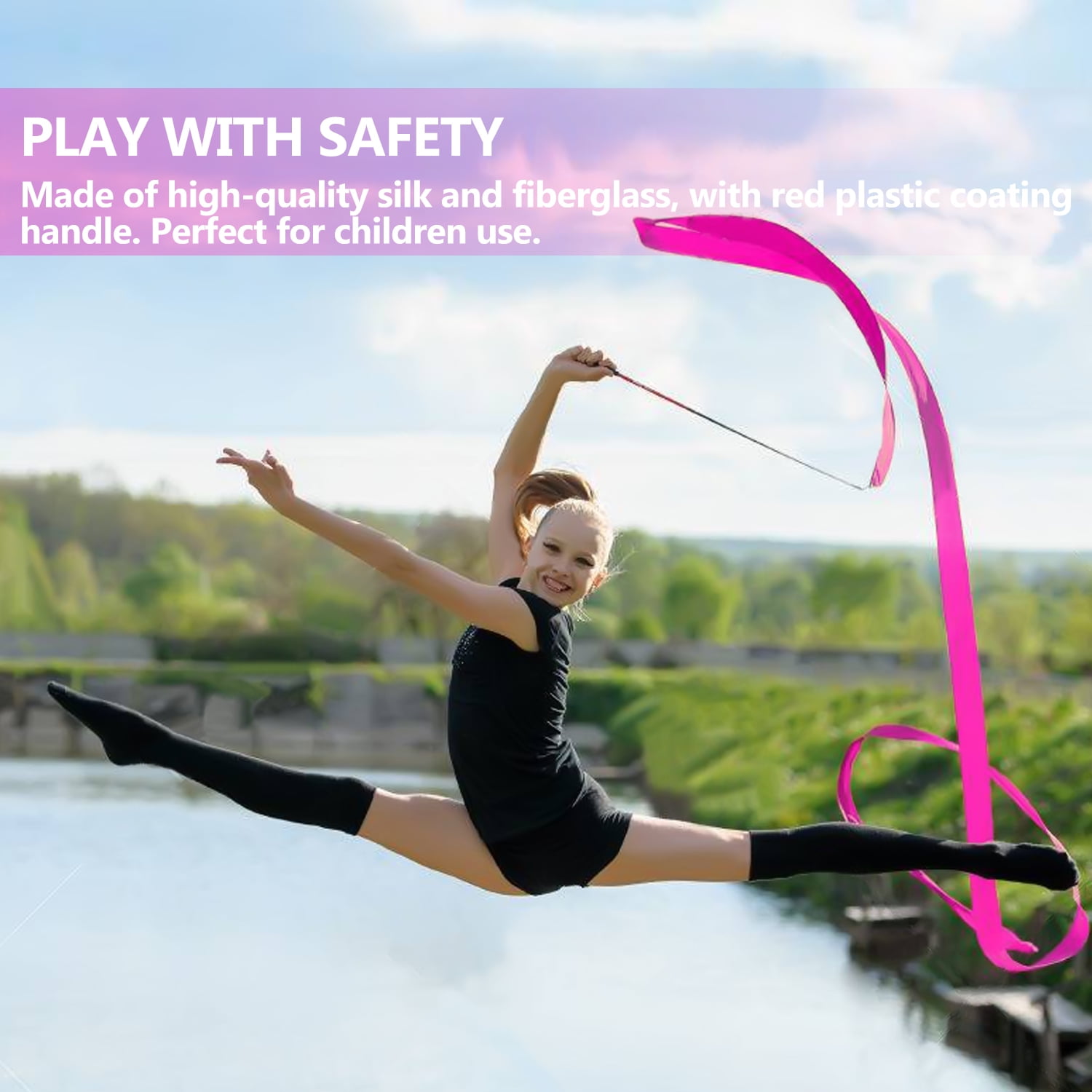 - ✔ PLAY WITH SAFETY – Ideal for participating in different energetic dancing activities. Made of high-quality silk and fiberglass, with red plastic coating handle. The metal clasp on the top of the rod provides the ribbon with flexible twirling.