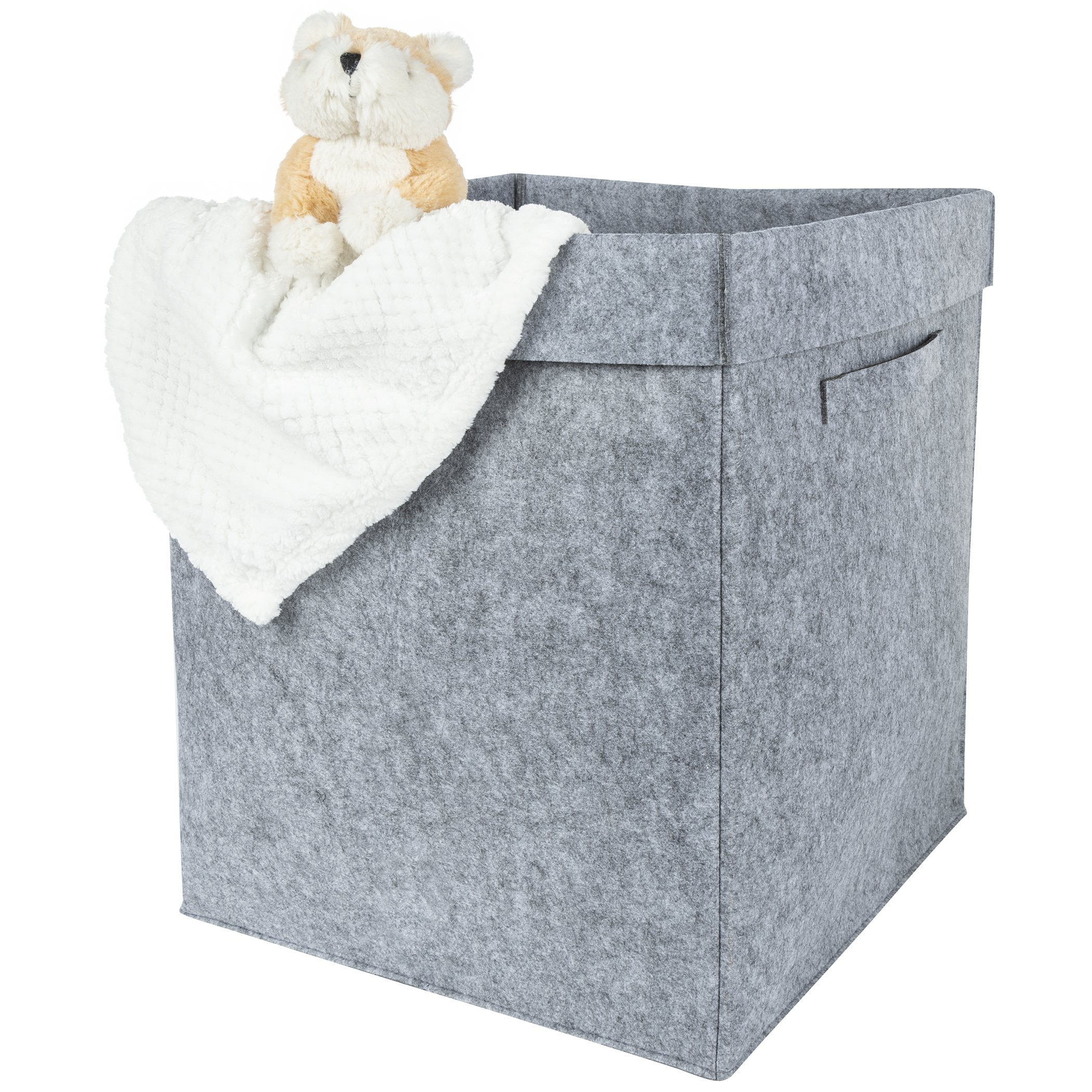 This Sammy & Lou Light Gray Felt Bin with a fold over top is a great storage essential. Perfect for holding toys, gear, blankets, clothes or just keeping clutter out of sight. Featuring a finished, folded edge, the hamper has spacious storage capacity with a large opening and roomy interior. Coordinating accessories and room decor by Sammy & Lou are available and sold separately.