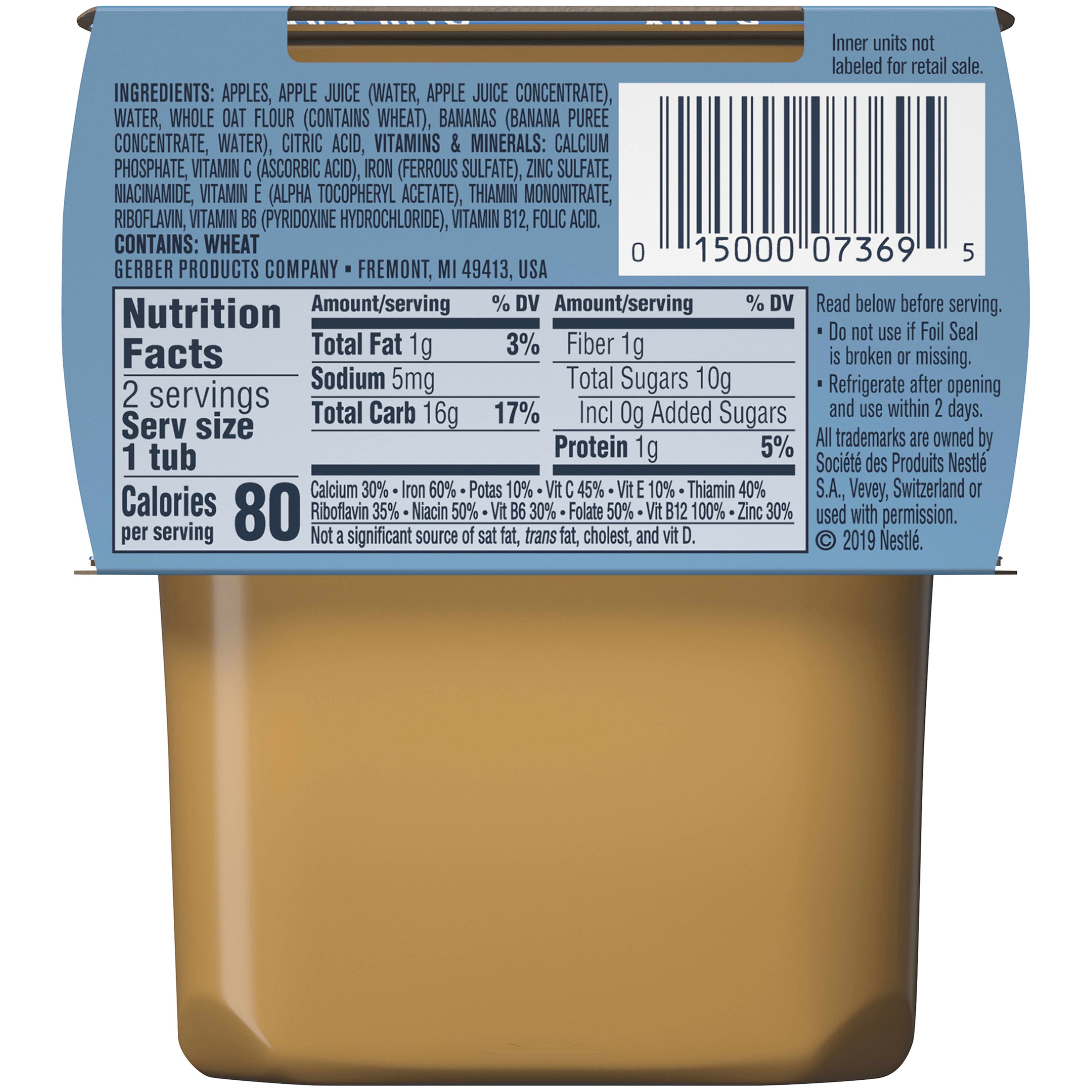 Gerber 2nd Foods Baby Foods, Apple Banana with Oatmeal, 4 oz Tub (16 Pack)