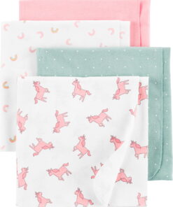 Carter’s Child of Mine Flannel Receiving Blanket, 4-Pack, Girl, Pink Unicorn