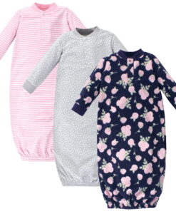 Hudson Baby Infant Girl Fleece Long-Sleeve Gowns 3pk, Navy Rose, 0-6 Months