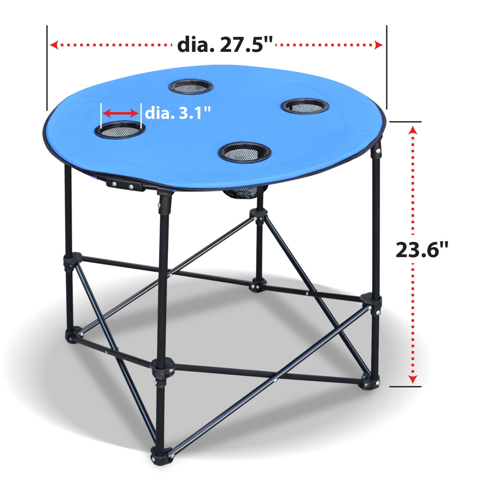 Sunrise Dia 27.5′ Foldable Picnic Round Table, 4 Cup Holder, 1 Level, with Carry Bag, Color: Blue