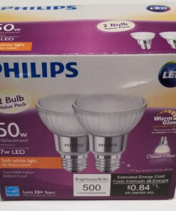 Phillips LED 50-Watt PAR20 Indoor Floodlight, Soft White, Dimmable, E26 Medium Base (2 Pack)