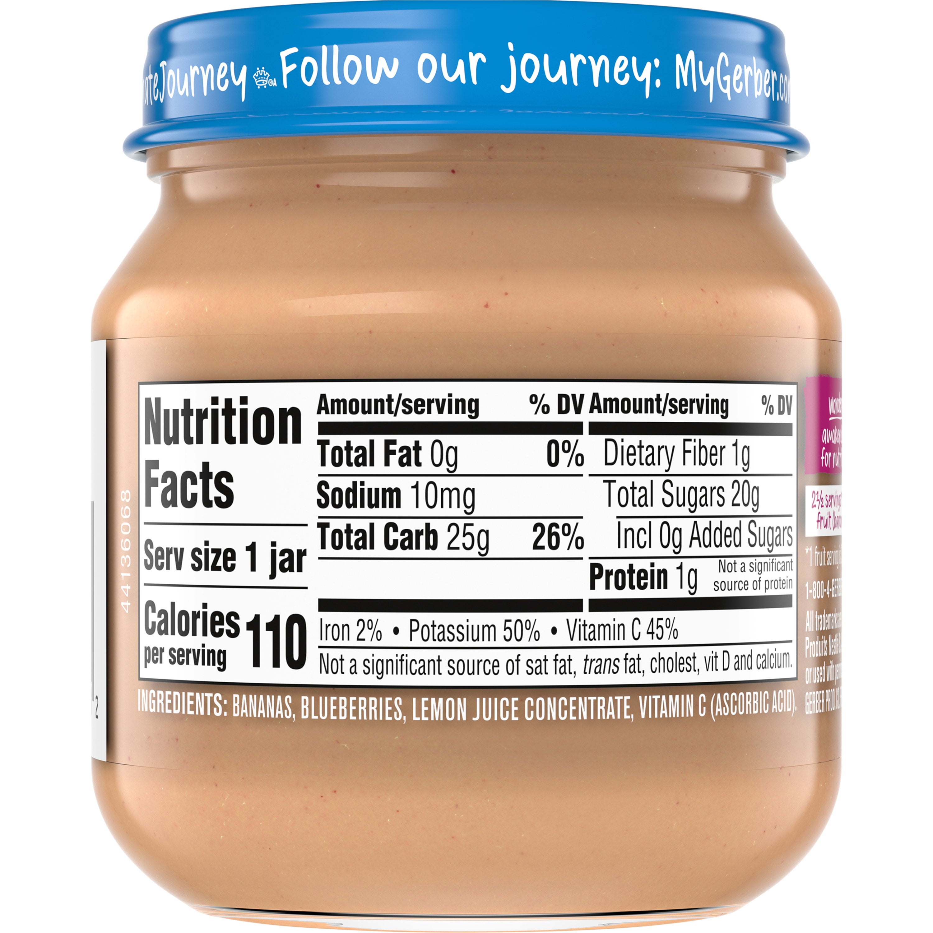 Gerber 2nd Foods Natural for Baby Wonder Foods Baby Food, Banana Blueberry, 4 oz Jar (10 Pack)