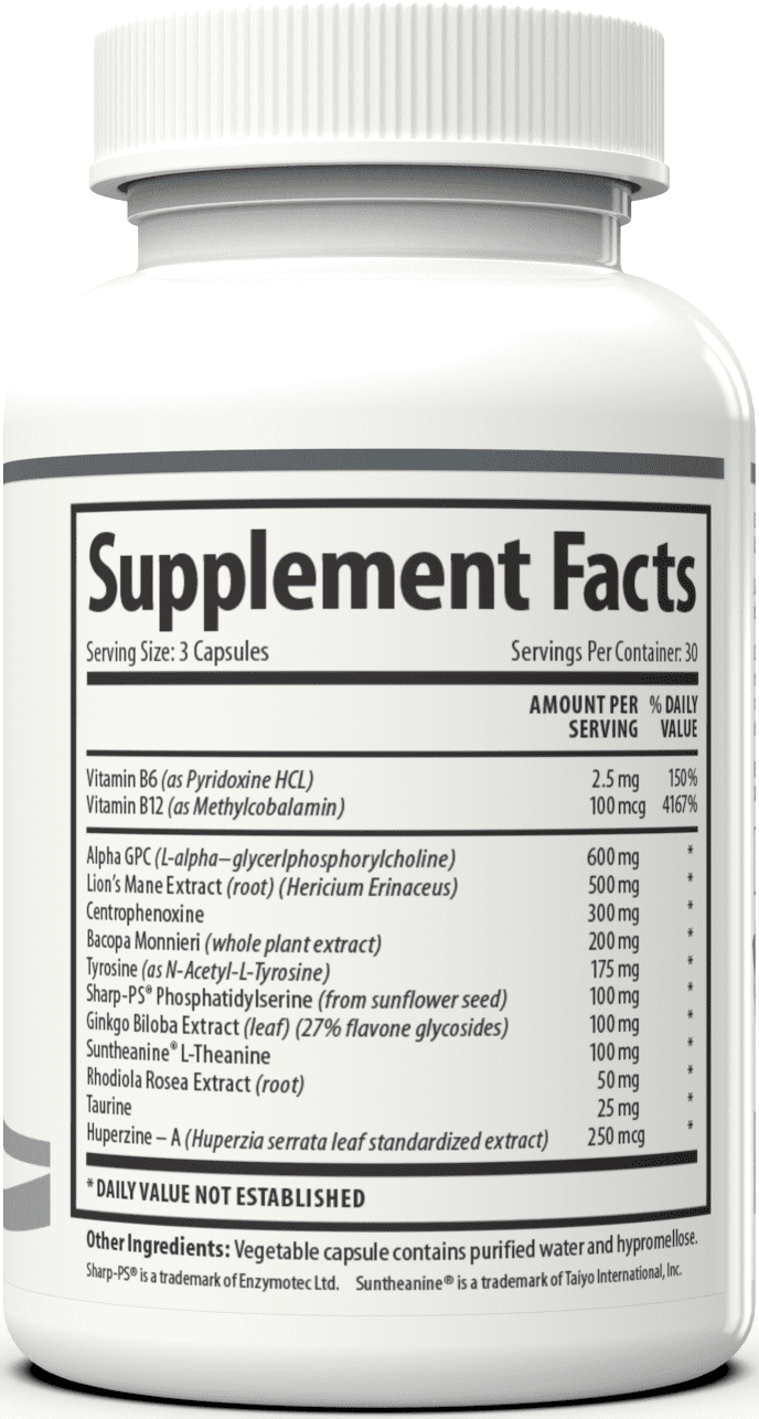 - CLINICALLY PROVEN NOOTROPIC INGREDIENTS: Support healthy brain function and peak mental performance; Our memory support supplement formula contains Alpha GPC. Bacopa Monnieri, Ginkgo Biloba, Rhodiola Rosea, Huperzine A and more
