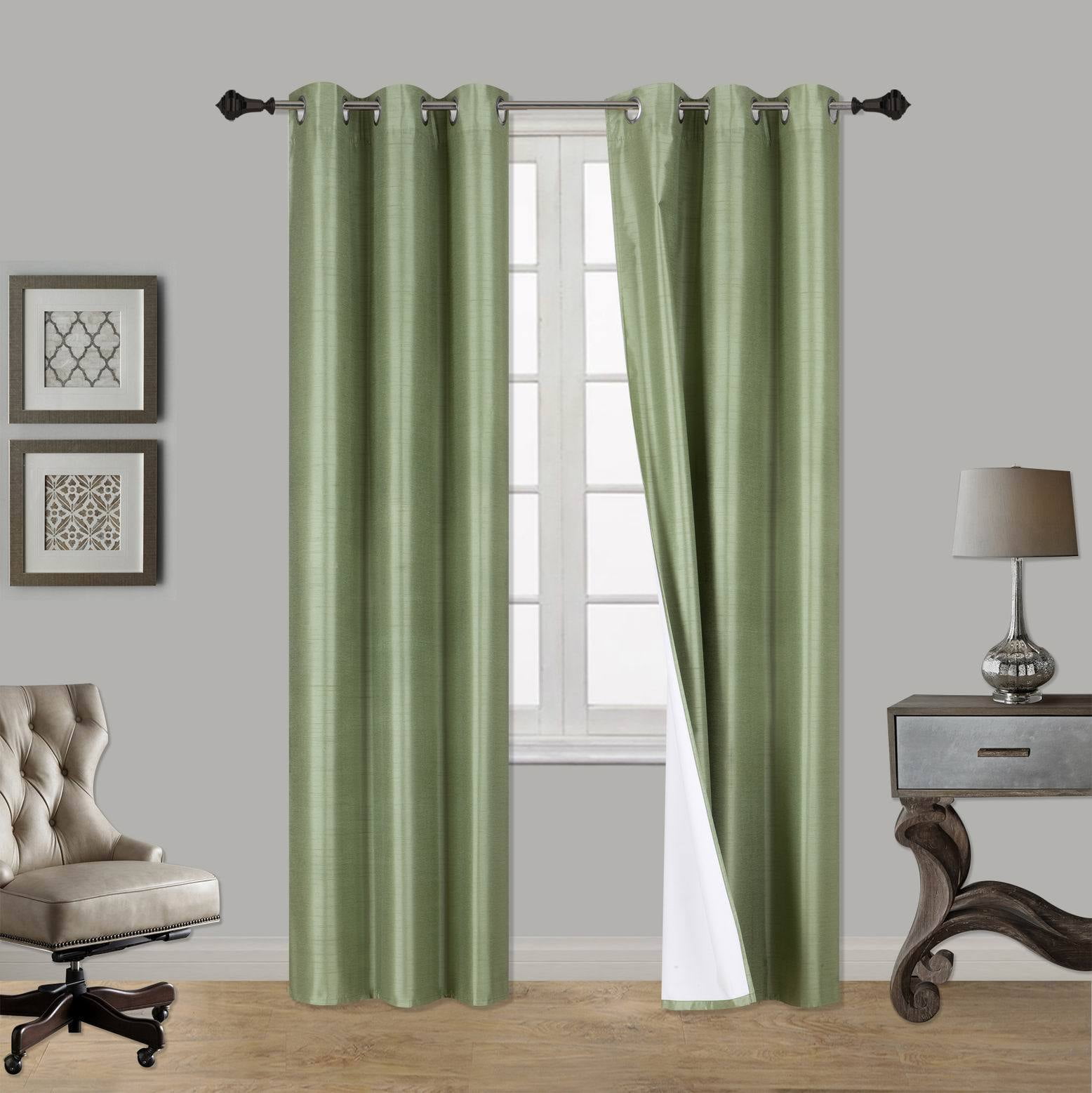 1 PAIR SAGE GREEN ADAM 95′ LENGTH Insulated Lined 100% Heavy Thick Blackout BRONZE Grommet Window Curtain Panels Drapes NOT SEE THROUGH ENERGEY SAVING