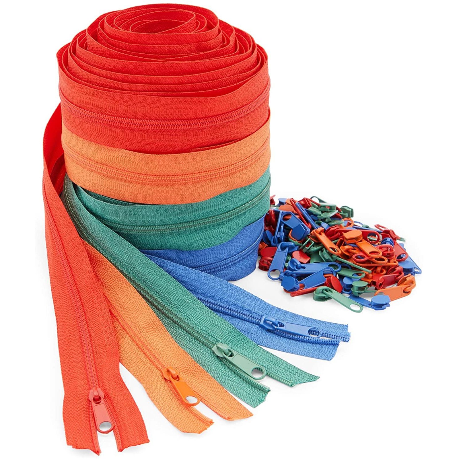 Use this set of 120 zippers to replace broken zippers on clothing and handbags, or use them to craft custom purses, dresses, or pouches. The total length of each #3 zipper measures 5 yards, but can easily be shortened by tucking the top end into the seams and stitching into place. The zipper set includes 4 colors to ensure you always have the correct color on hand when needed, colors include red, orange, blue, and green. Our nylon zippers for sewing are made of machine washable nylon that won’t shrink or fade after the washing and drying cycle.