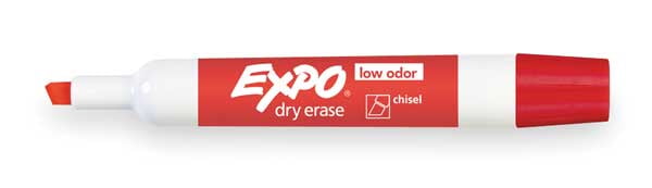 Dry Erase Marker, Original Barrel Type, Ink Color Red, Tip Size Chisel, Low Odor, Package Quantity 12