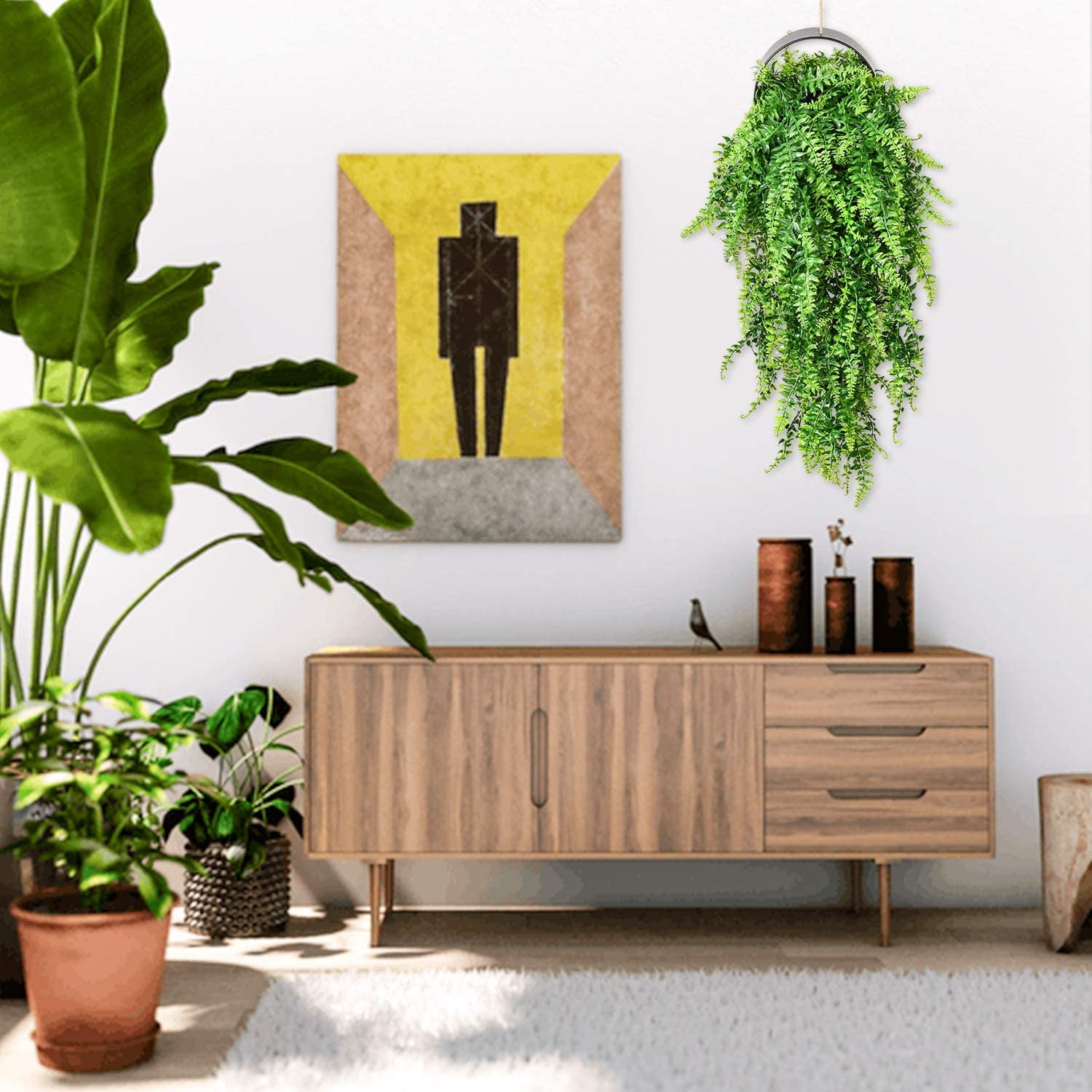 - Artificial boston ferns may be squeezed and deformed in transit, you may adjust the branches to the most natural state after displaying it.