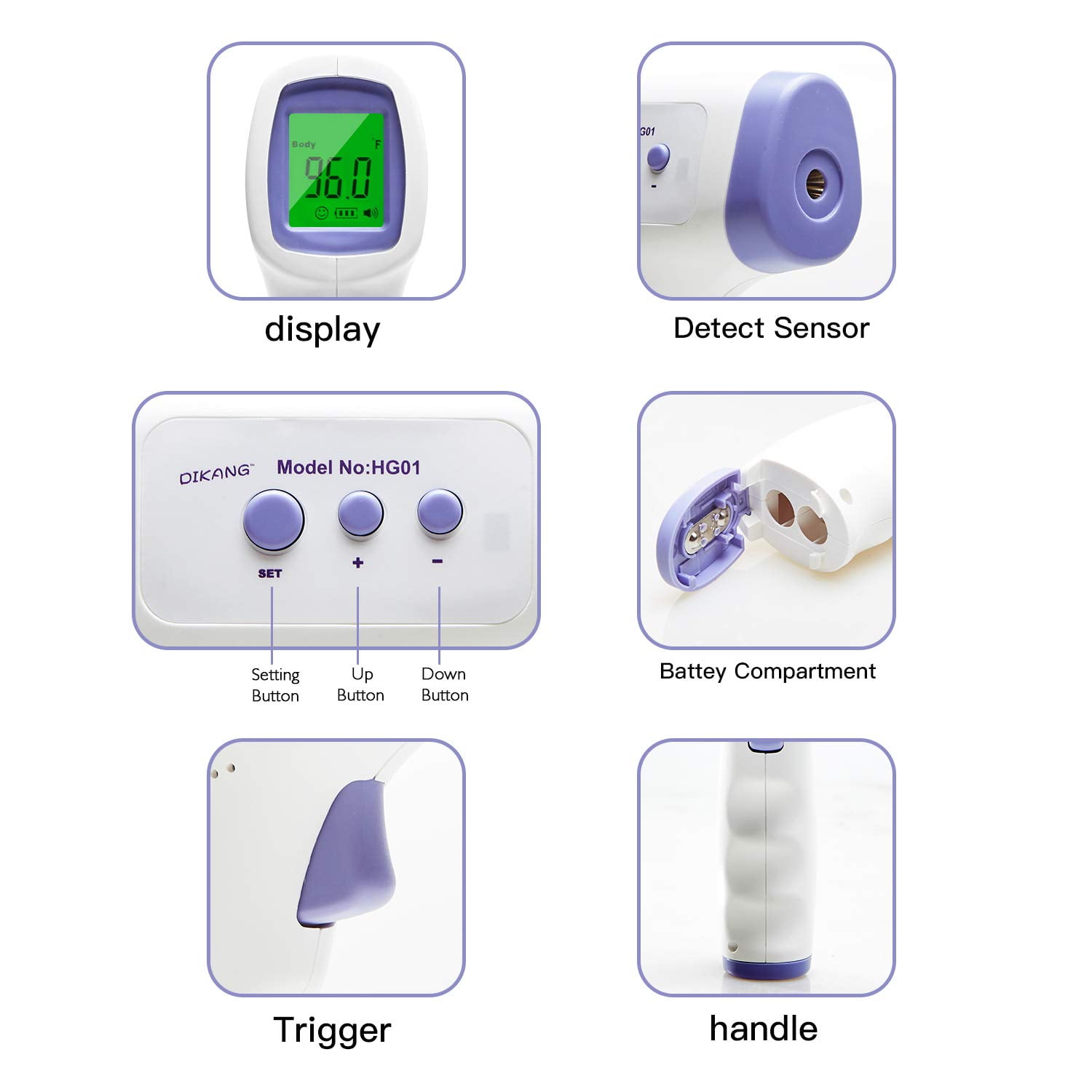 Check temperatures safely and quickly with this non-contact infrared thermometer from Jiacom. Simply point, click and read. This easy-to use one-touch operation allows you to read temperatures of the forehead, body, surface, and objects in just one second. This is a hygienic alternative to regular thermometers, and has a quick read LCD backlit display featuring a red or green silent glow. No more guessing, or waiting minutes for results, this is an accurate, instant and safe non-contact thermometer.Policies & plansSpecificationsTemperature range 89.6°f – 109.2°f (Body temp.)Non-touch to forehead for approx.1.5 sec @ 2 inches30 memories, beeper functionFever alarm (> 37.5℃ / 99.5°f)Auto shut off2 color back-lit LED screen2 AAA Batteries