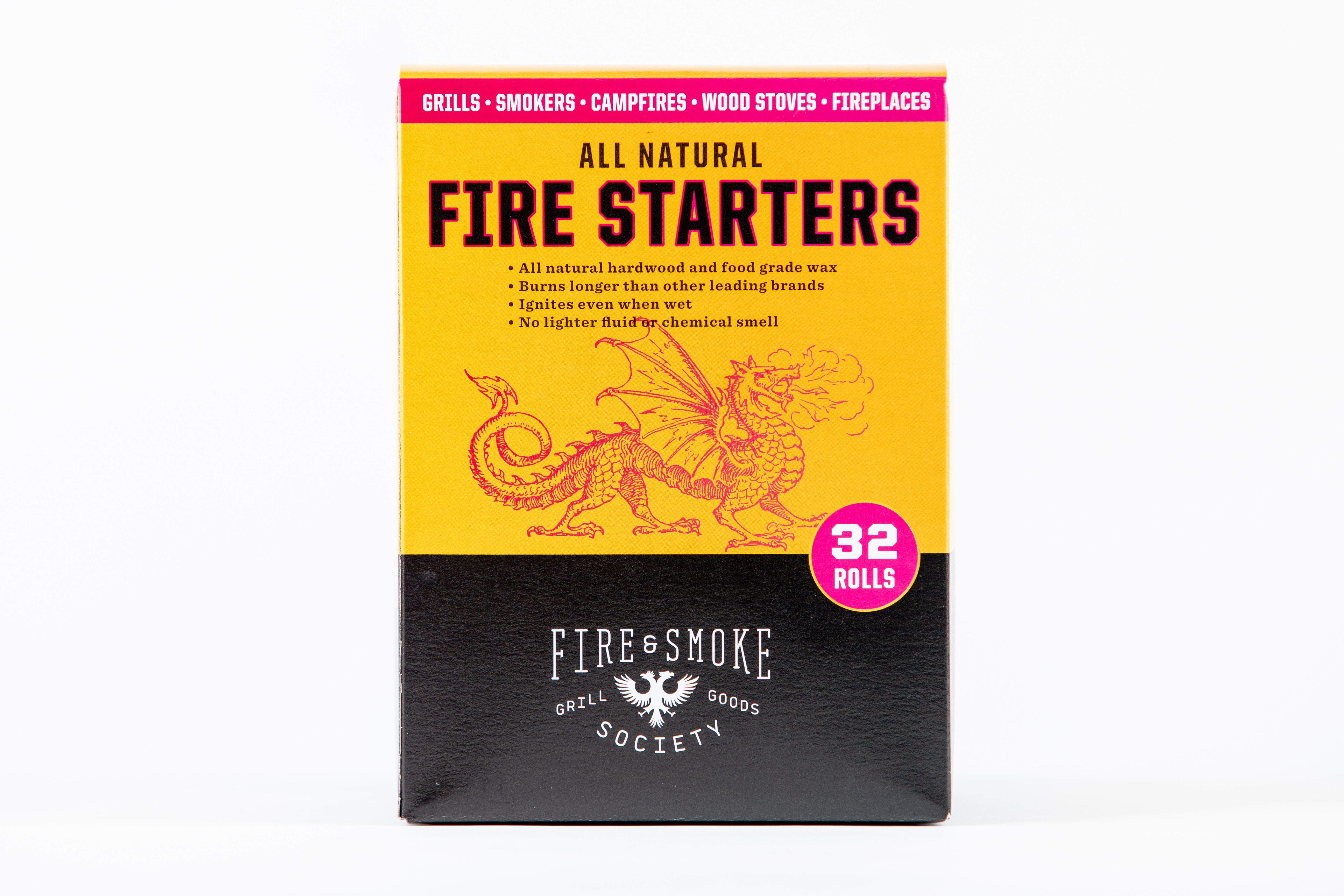 Let’s get this grill started right. Let’s get this grill started quickly. Fire & Smoke Society starters are guaranteed to start your fire effortlessly anytime, anywhere. Just light the weatherproof Baby Bonfire and return in minutes to glowing Fire & Smoke Society coals. They light fast and burn 50% longer than the leading competitor, and included waterproof matches means even a mermaid (or merman) can do it.