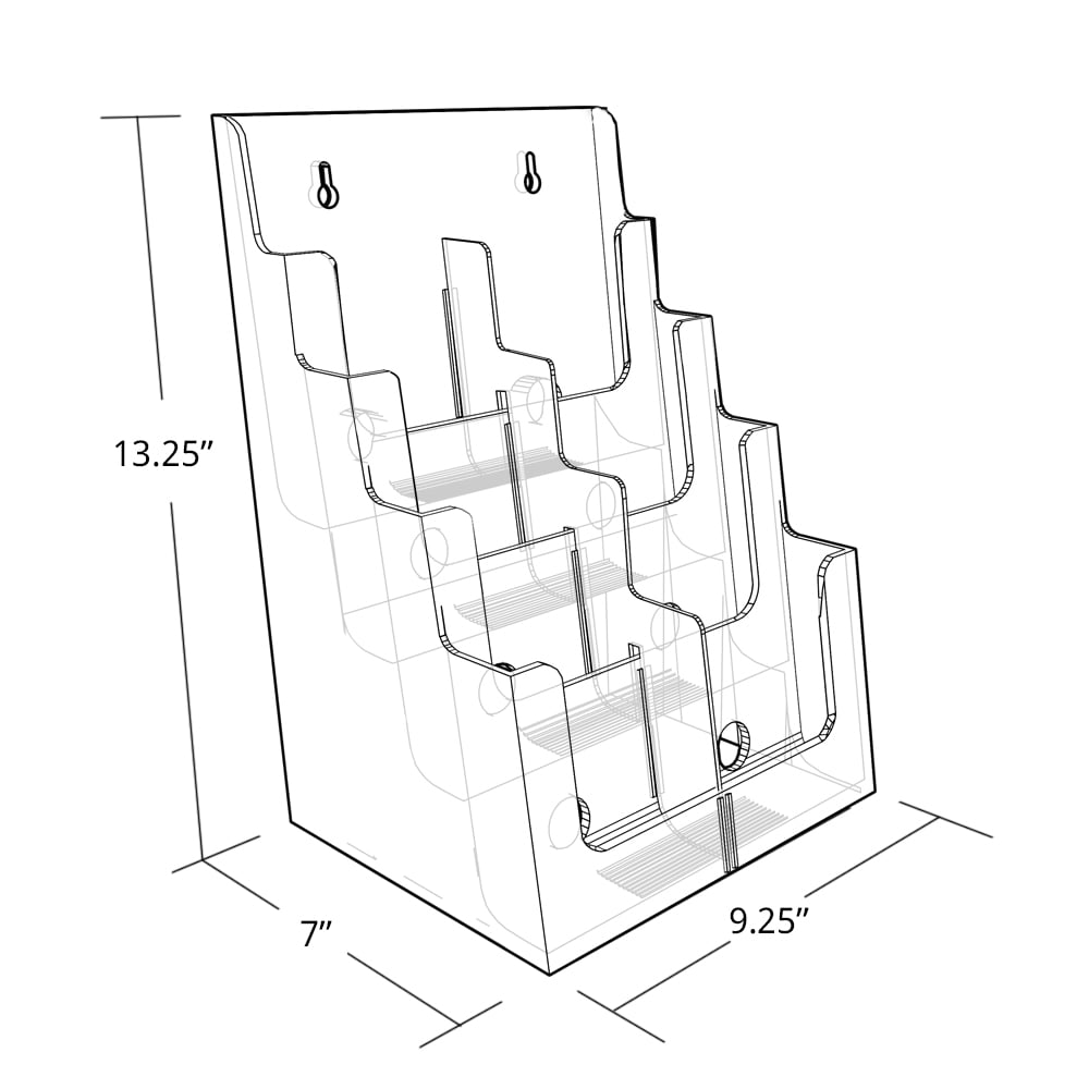 4-Compartment DocuHolder Booklet Size, 6.88w x 6.25d x 10h, Clear