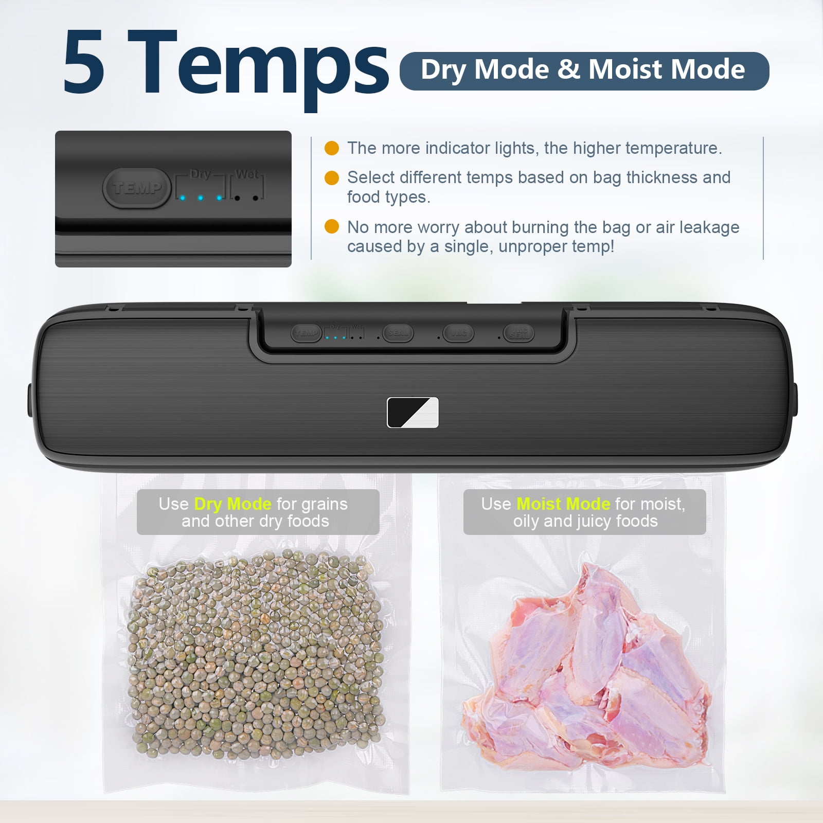 ✔5 Adjustable Sealing Temps Suits Different Bag Thicknesses And Food Types