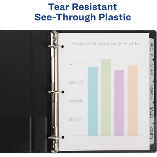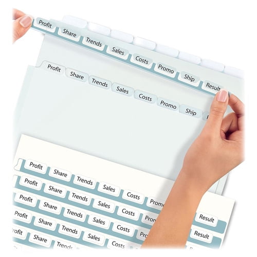 Need to organize a single binder for a project, or create multiple sets for a meeting or seminar? With Index Maker(R) Dividers you can get it done quickly and easily with professional results. The clear labels virtually disappear on the tabs, giving your dividers a clean, printed-on look. Save time with the Easy Apply(TM) strip that lets you label all the tabs at once, making it simple to create custom dividers right from your computer. Just use the free templates at avery.com/print and you can personalize and print your tab labels in minutes. More from the Manufacturer