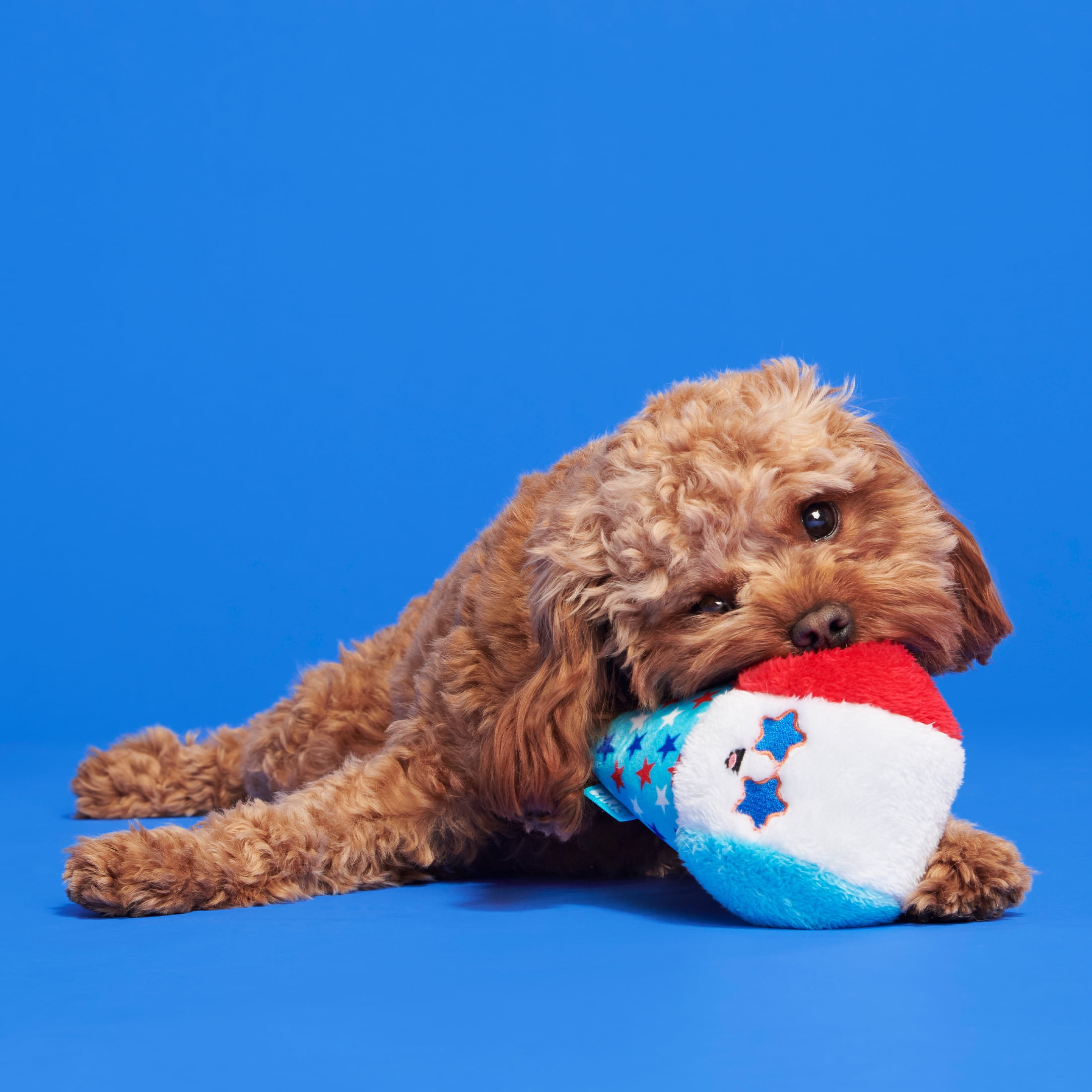 Put your pup’s boredom on ice with this sno cone dog toy! Packed with fluff and topped with super soft fuzz, Liberty Cone is always flavored for fun, and will have your pup squeaking until they’re seeing red, white and chew! This BARK original toy is part of our Yankee Doodle Dogs collection, which we salute, one nation under dog. Made by dog people, for dogs and their people, backed by BARK’s Happiness Guarantee.