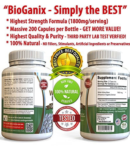 BioGanix Best Carb and Fat Blocker Supplement For Weight Loss, 1800 Mg, 200 Capsules