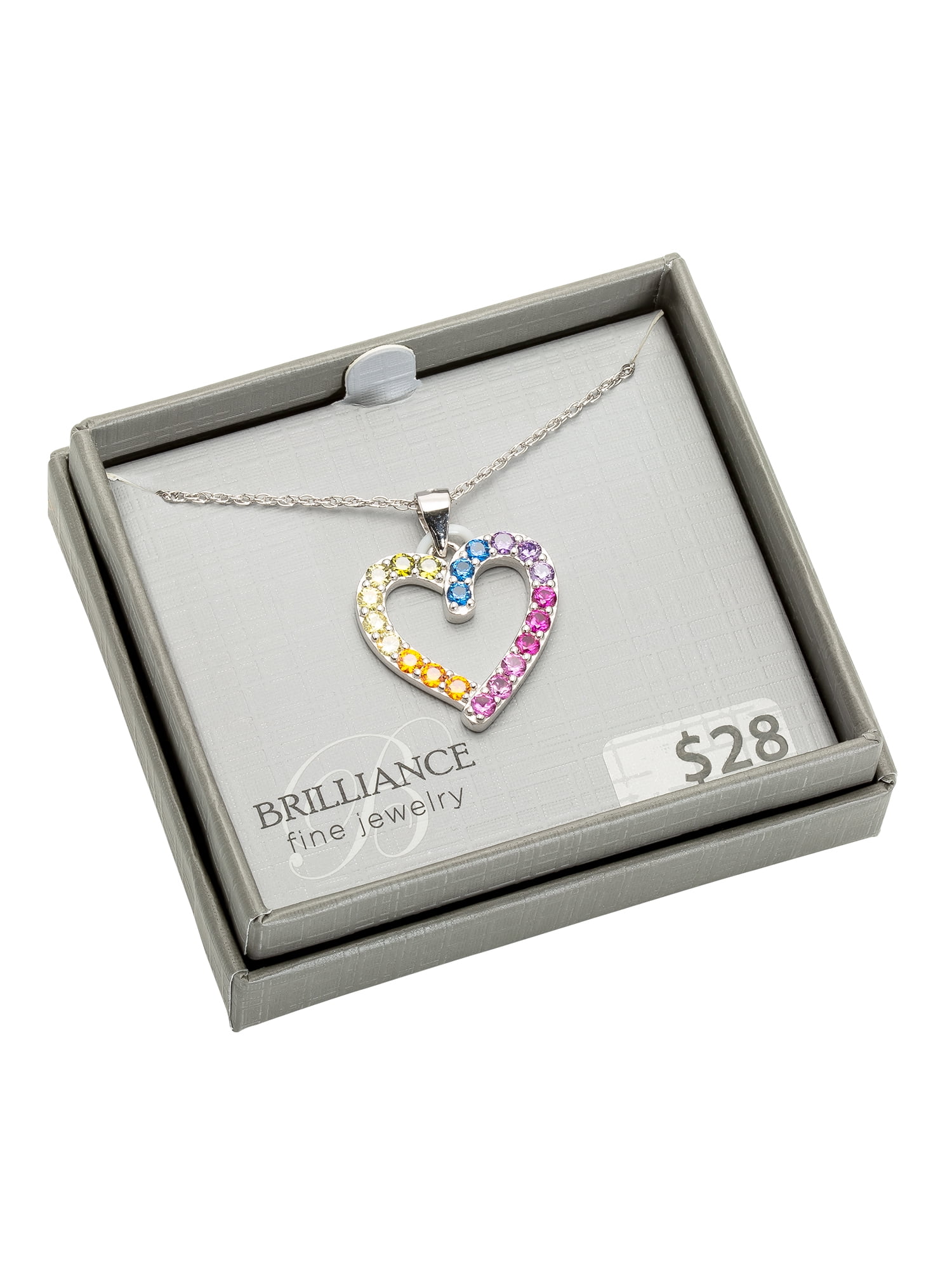 Brilliance Fine Jewelry Sterling Silver Rainbow Cubic Zirconia Heart Pendant Necklace, 18′ chain