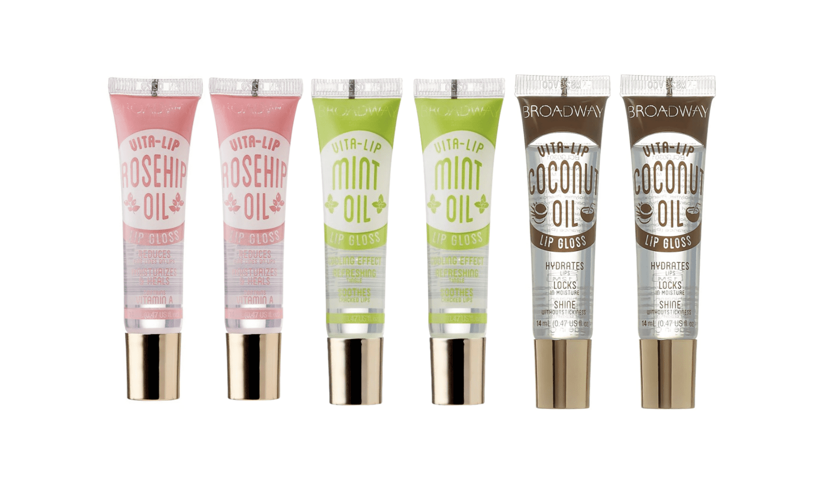 Broadway Vita Lip Gloss 6 Piece (2 Rose , 2 Mint, 2 Coco)
