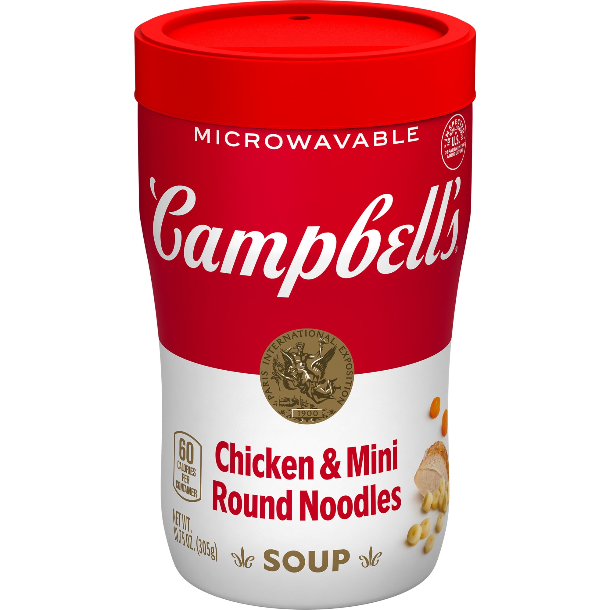 Campbell’s Sipping Soup, Ready to Serve Chicken & Mini Round Noodle Soup, 10.75 Oz Microwavable Cup