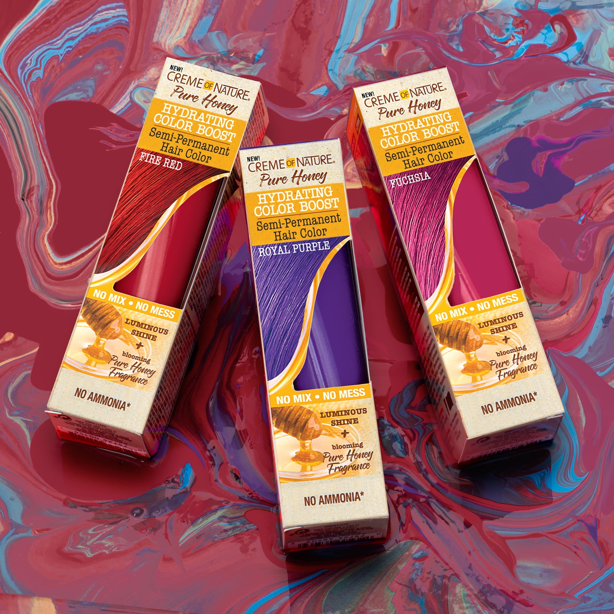 Creme Of Nature Pure Honey Hydrating Color Boost Semi Permanent Hair Color Royal Purple, 3 Oz
