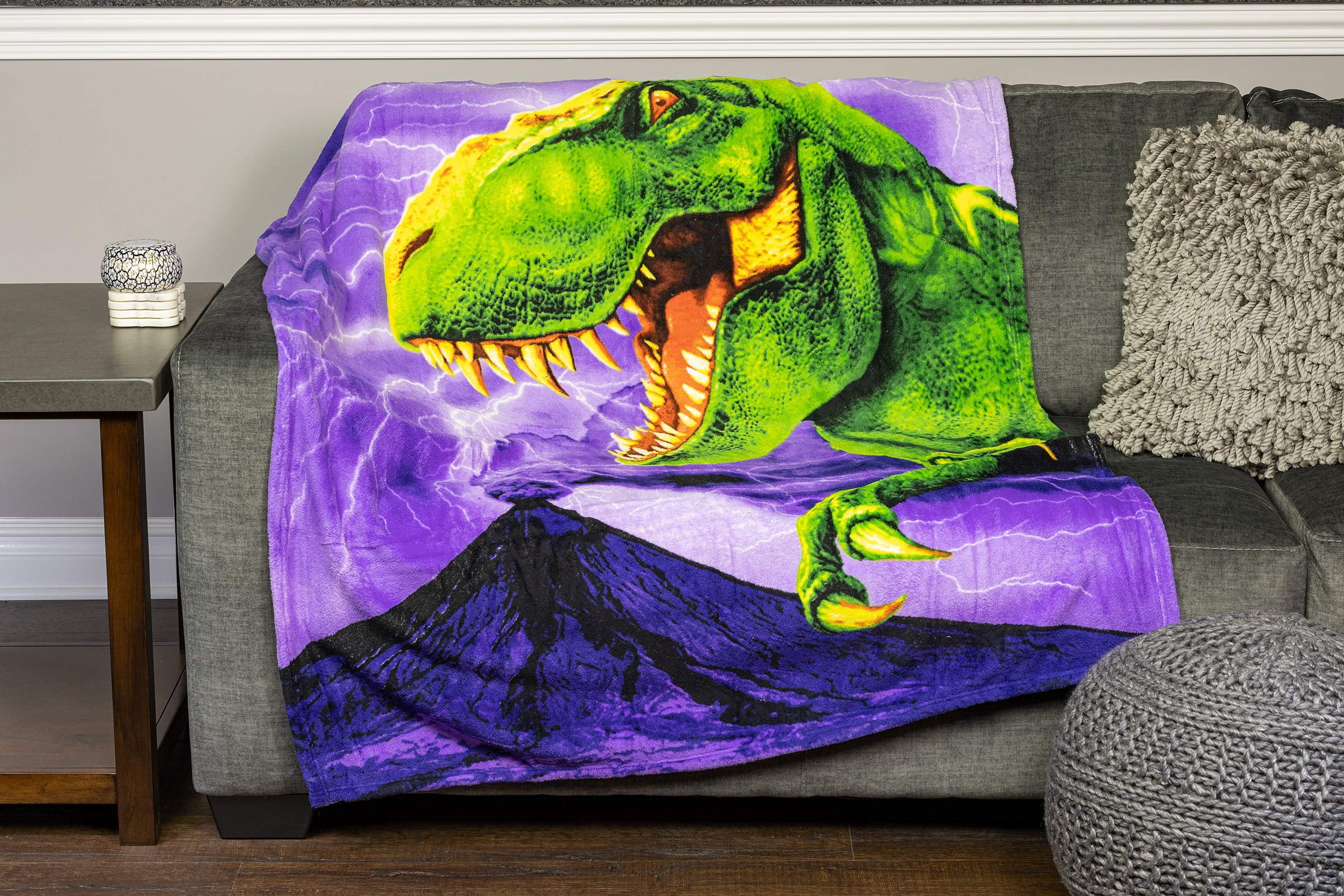 - Printed with bright vibrant colors, this Jurassic throw blanket is perfect for your home or as a gift for the holidays.
